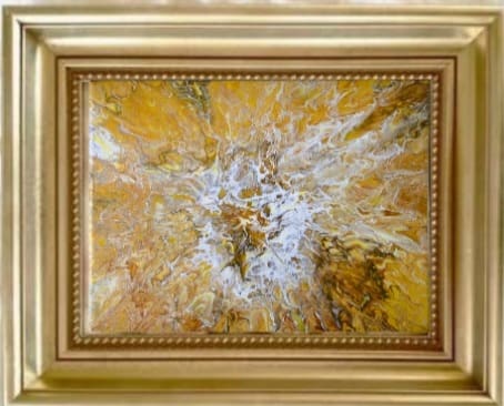 Acrylic, Abstract Art. With a mix of gold, yellow, brown and white. Sold unframed.