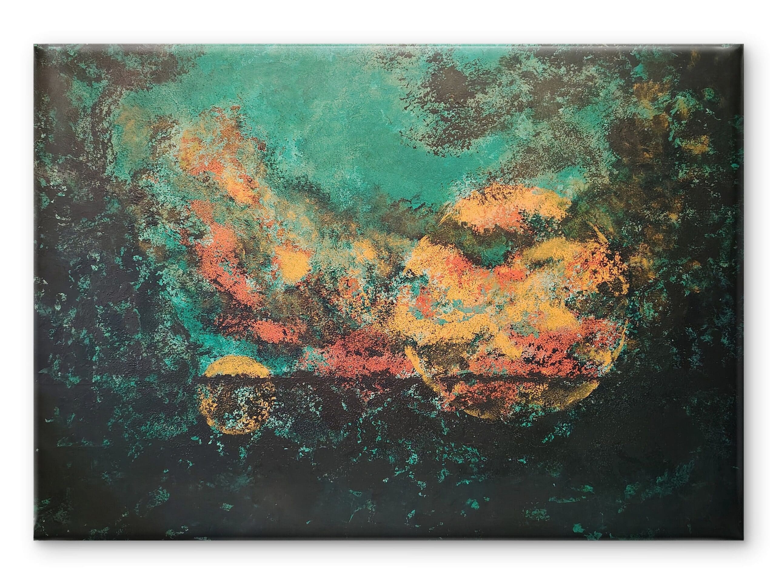Above Emerald Island, acrylic on canvas, 70×100 cm, unstretched