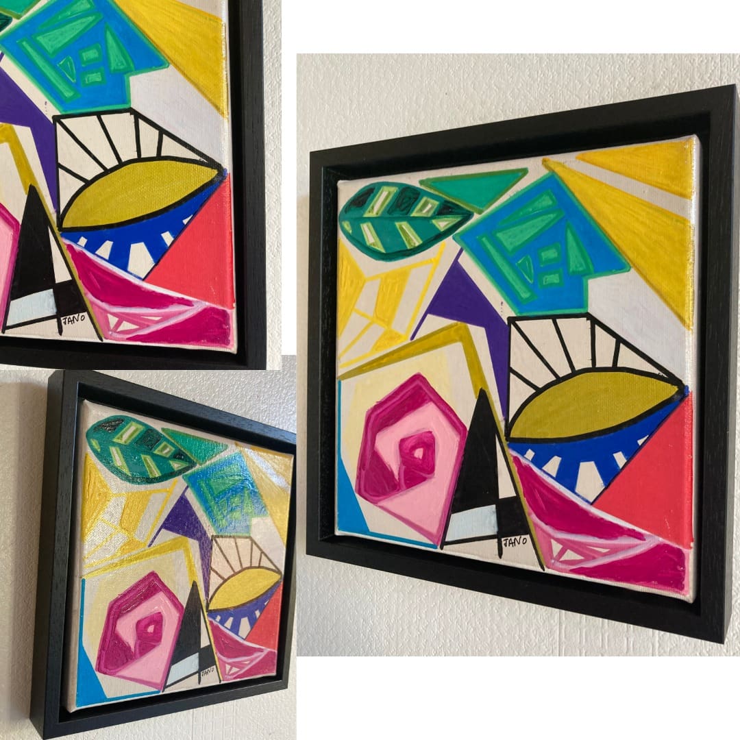 Original contemporary artwork. Framed in a black wooden frame. Inspired by Art Deco shapes and aesthetic.