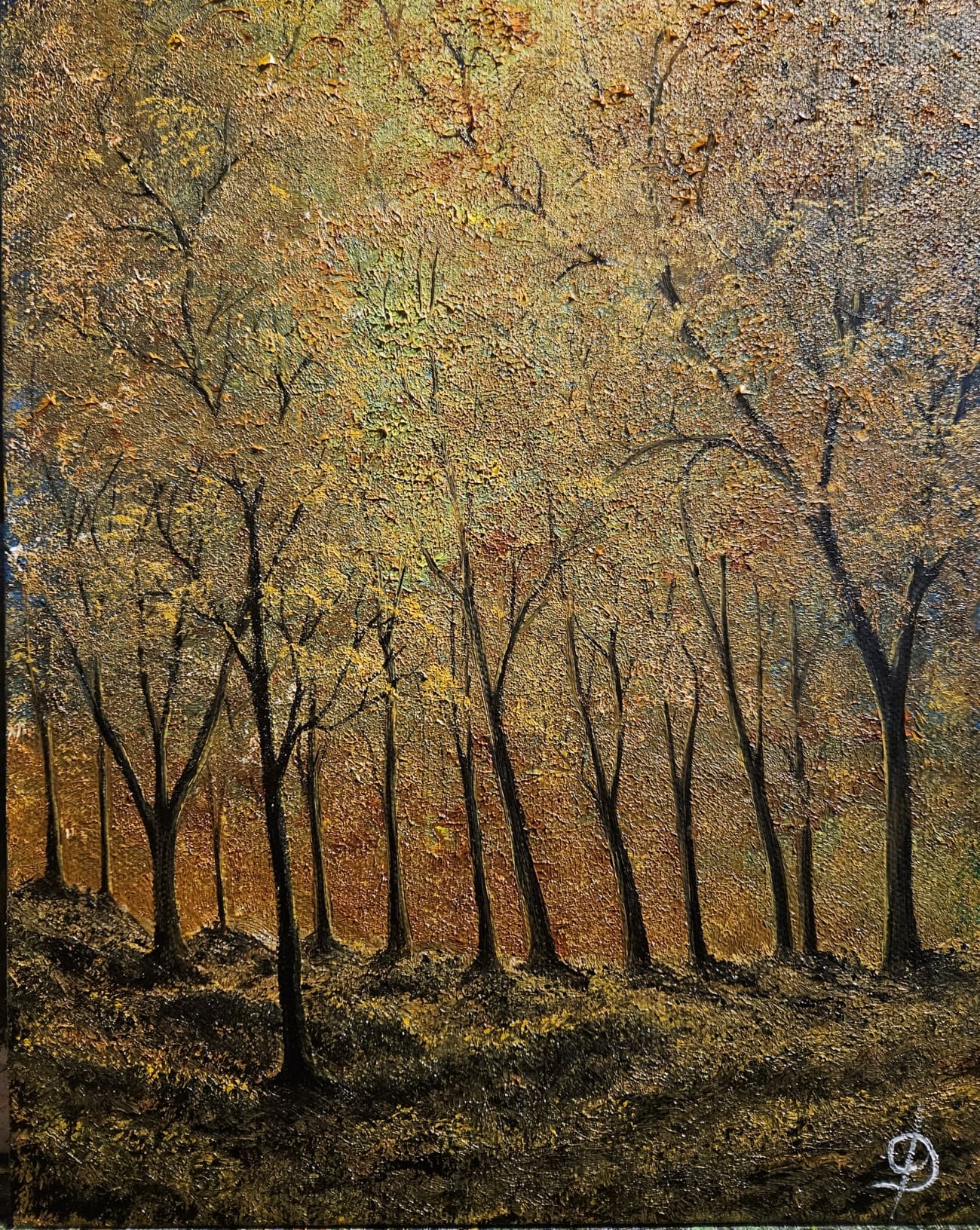 My artwork is varied but I usually return to trees, forests, mountains or landscapes. I focus on colours before I paint and whatever happens on the canvas shows through the colours I have selected. I mostly paint with Oils but will use Acrylics once in a while, especially if I am painting candles.