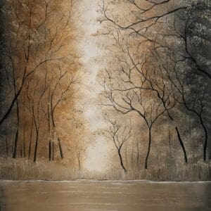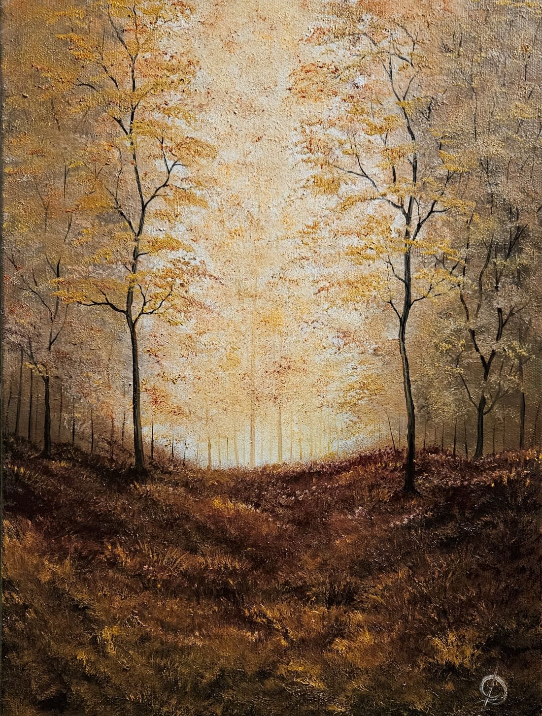 Oil on stretched canvas measuring 42 x 30 cms (A3). One of several paintings created over the last few months using various browns, yellows and a touch of black and white oil paints. I love the Autumn colours and this is one of several pieces that have taken over my work from late 2025 into 2026. #185