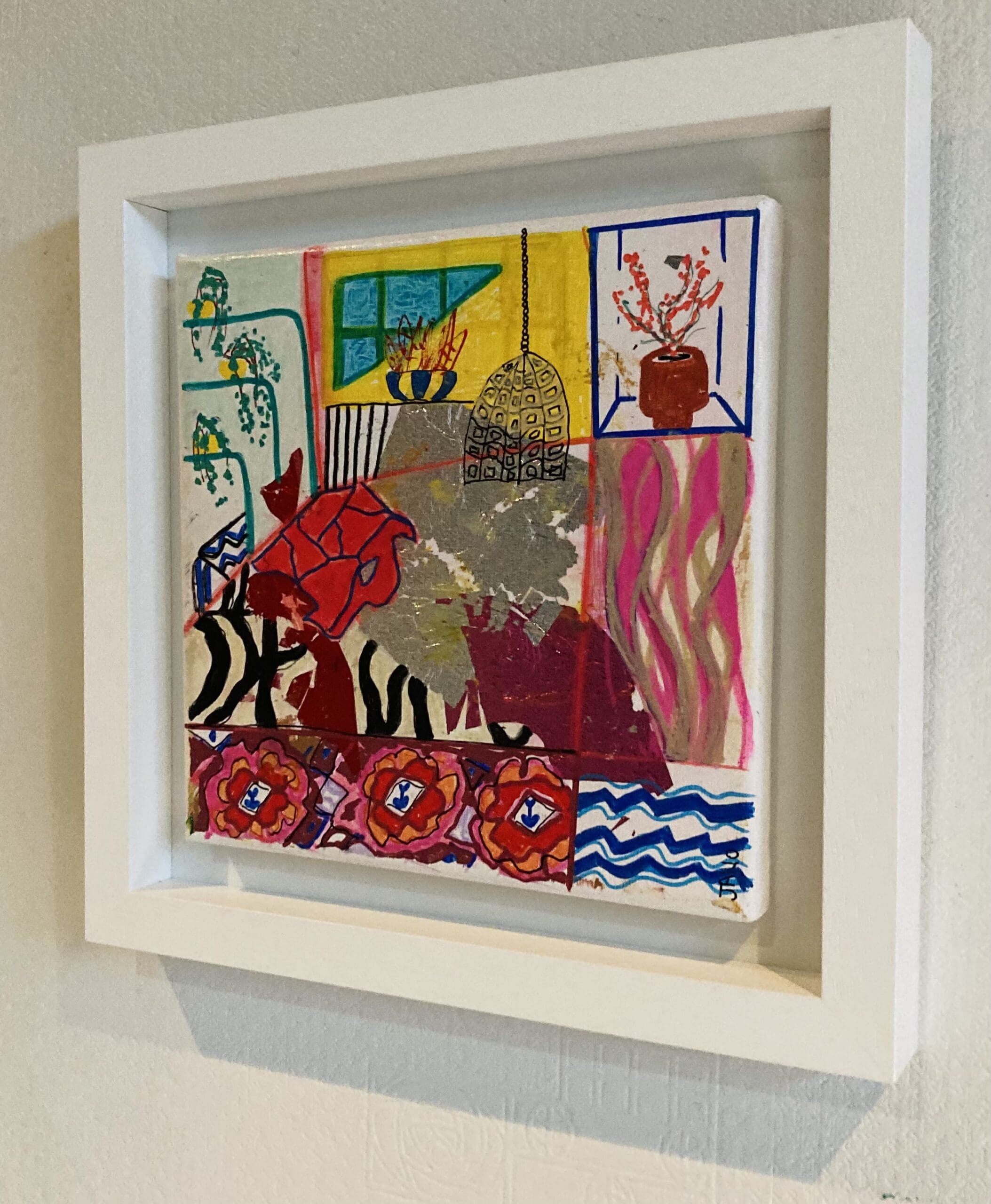 When homes are decked out like offices and offices are decorated like homes, welcome to Office Home, your office away from home! With bright colours against a white backdrop, snd silver metallic foil, this artwork will work with your contemporary space. Framed in a white wooden tray frame.