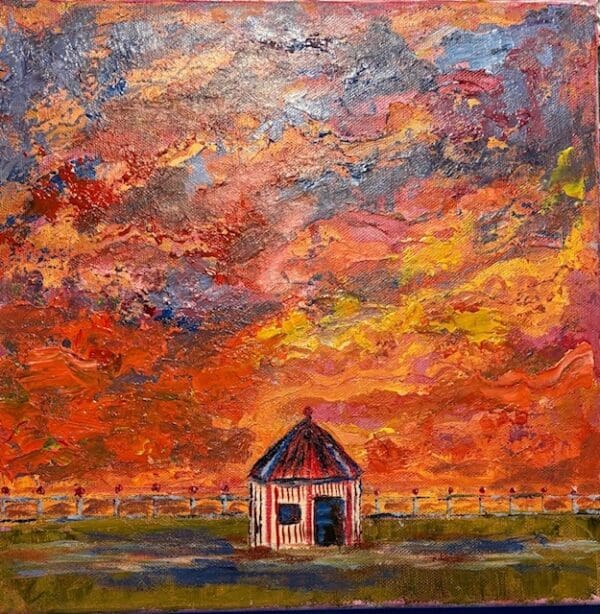 This piece is full of colour and texture and it will brighten any room in your home . It is inspired by beautiful seaside sunsets.