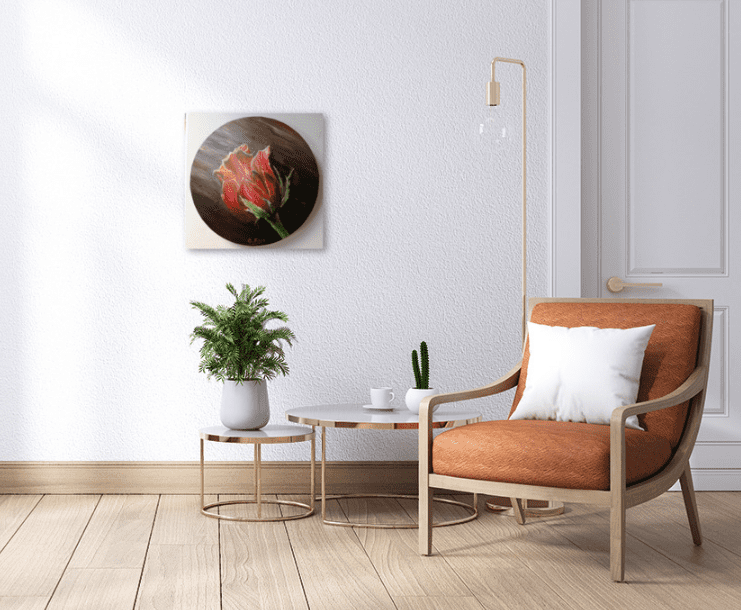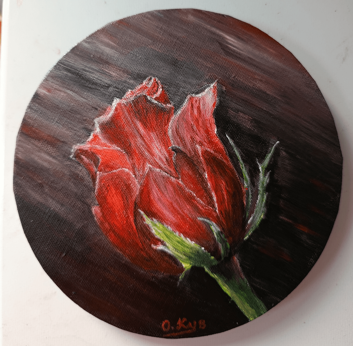 Acrylics on stretched canvas, 20 cm, painted sides, ready to hang.