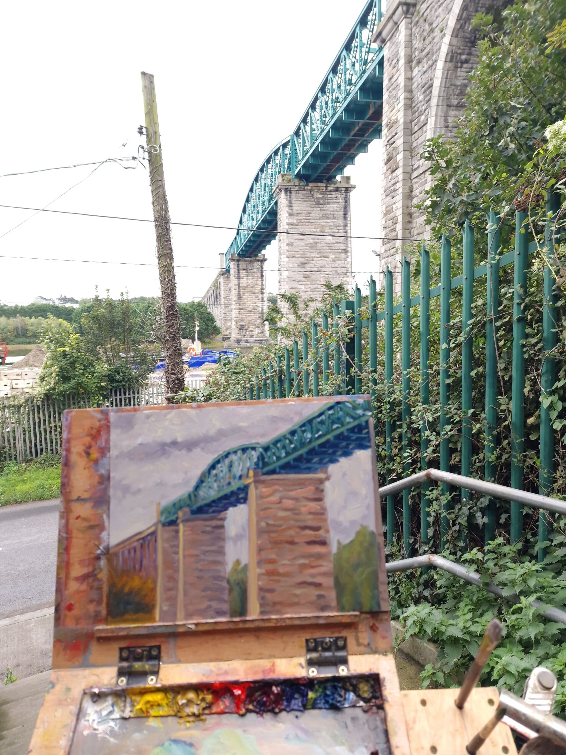 Plein Air painting, Boyne Viaduct at Drogheda, County Louth, Ireland