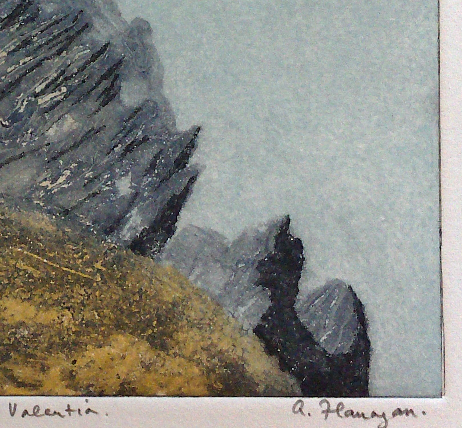 Bray Head, Valentia is an original artwork created in Carborundum print in 2022. The piece measures 21cm x 15cm. This work explores “Bray Head, Valentia” is a carborundum and drypoint print in an edition of 30 prints. The print depicts Bray Head on the spectacular western end of Valentia Island in Co. Kerry, Ireland. Ideal for buyers looking for an original piece with clear detail, character, and presence.