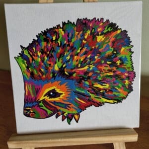 Acrylic Butterfly on 20x20cm canvas panel board and wooden tabletop easel holder stand 20x28cm.