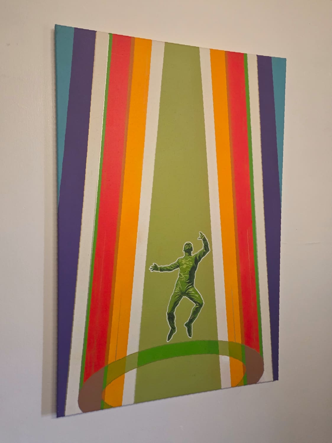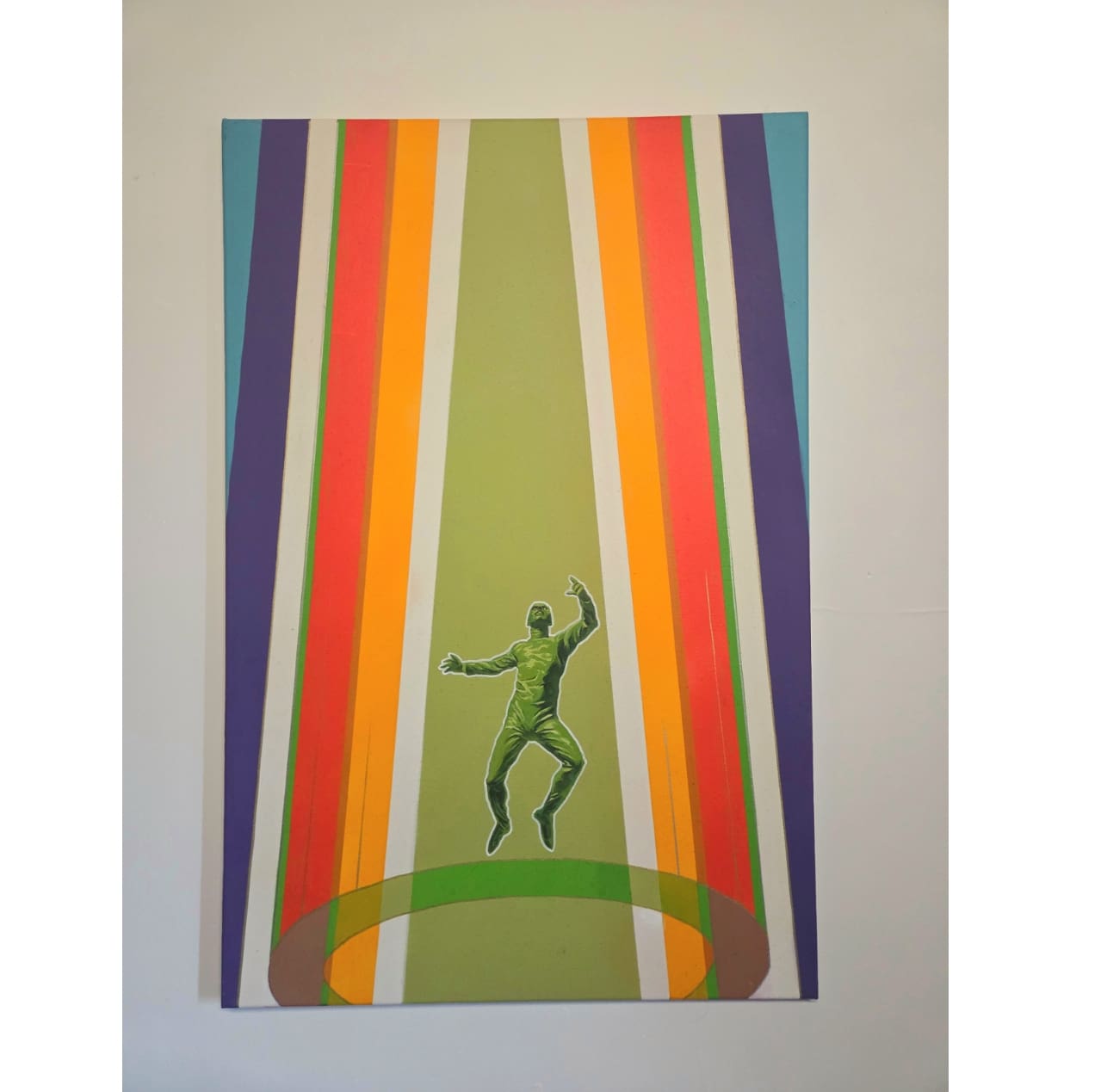 Original colourful stencil art with a combination of hand-painted oil and spray-painted acrylic. Produced on a 50x75cm stretched canvas with a satin varnish finish