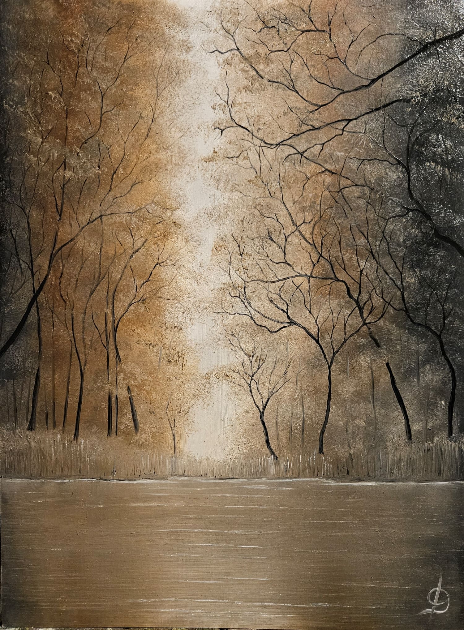 Original acrylic painting #107 on stretched canvas measuring 30 x 21 cms. This was originally a dark painting in oils which I managed to misplace in the studio. I had plans to paint over the original and when it turned up, the image that was created was a total surprise as it was a painting using heavy acrylics and pallet knives. I was to add to this but I was informed by some of my family to leave it as is and try not to constantly add to my paintings. When its done its done and this painting no longer needs to hide away.