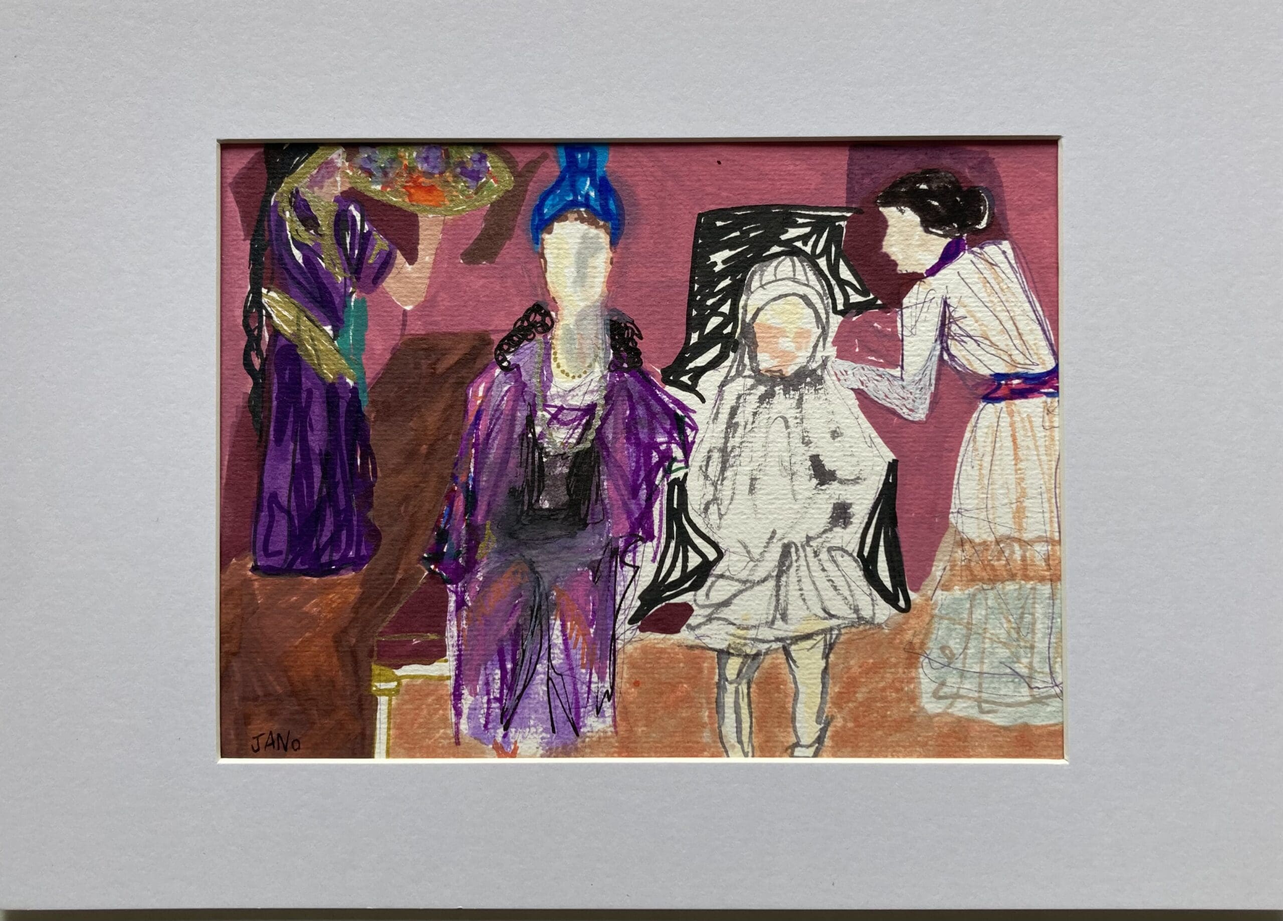 Materials: Drawn / painted artwork in acrylic on 300gsm watercolour paper with grain, mounted in white card mount. suitable for framing in A4 frame to suit your space.