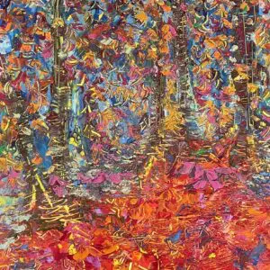 This is a moody piece with glimmers of light. It is a 50cm x 50cm acrylic painting on a canvas board. This piece will be sold framed in a handmade white open box floating frame.