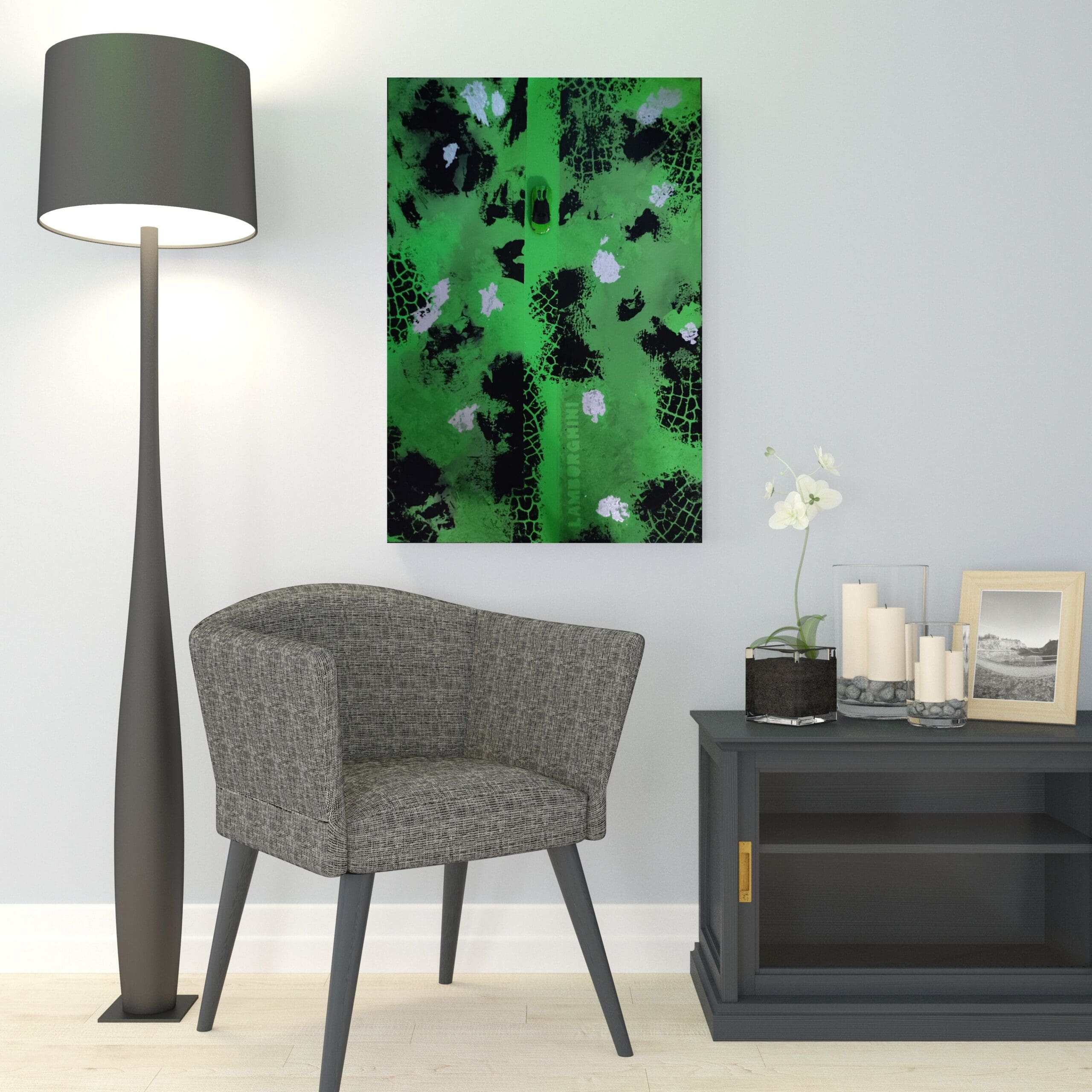 This installation painting is for car lovers and model car collectors. It’s a great way to decorate an office, study, living room, or child’s room.