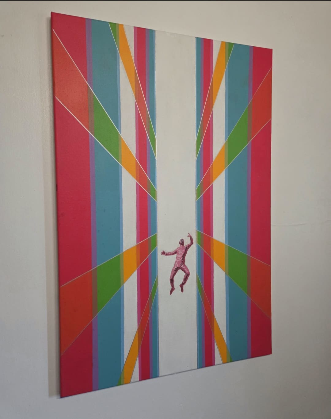 Original abstract piece made with a mix of hand painting oil and stencil acrylic. Produced on a stretched canvas with a satin varnish finish