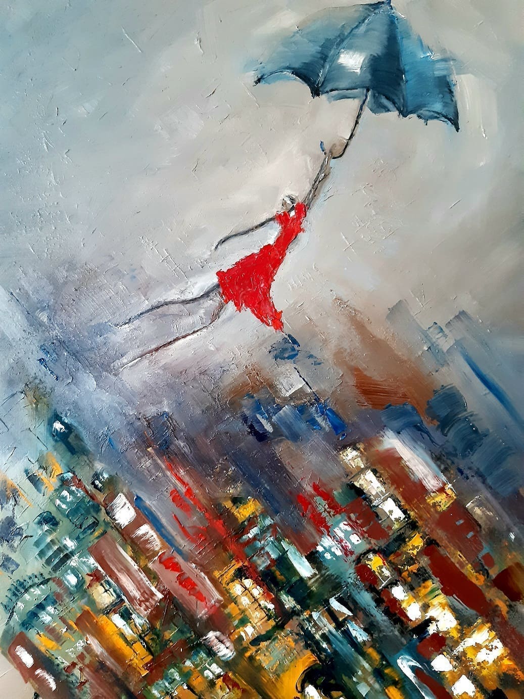 City lights reflected in raindrops, architectural fragments of old streets, all the moods and emotions I write in my imagination to then pass through colours and lines.
