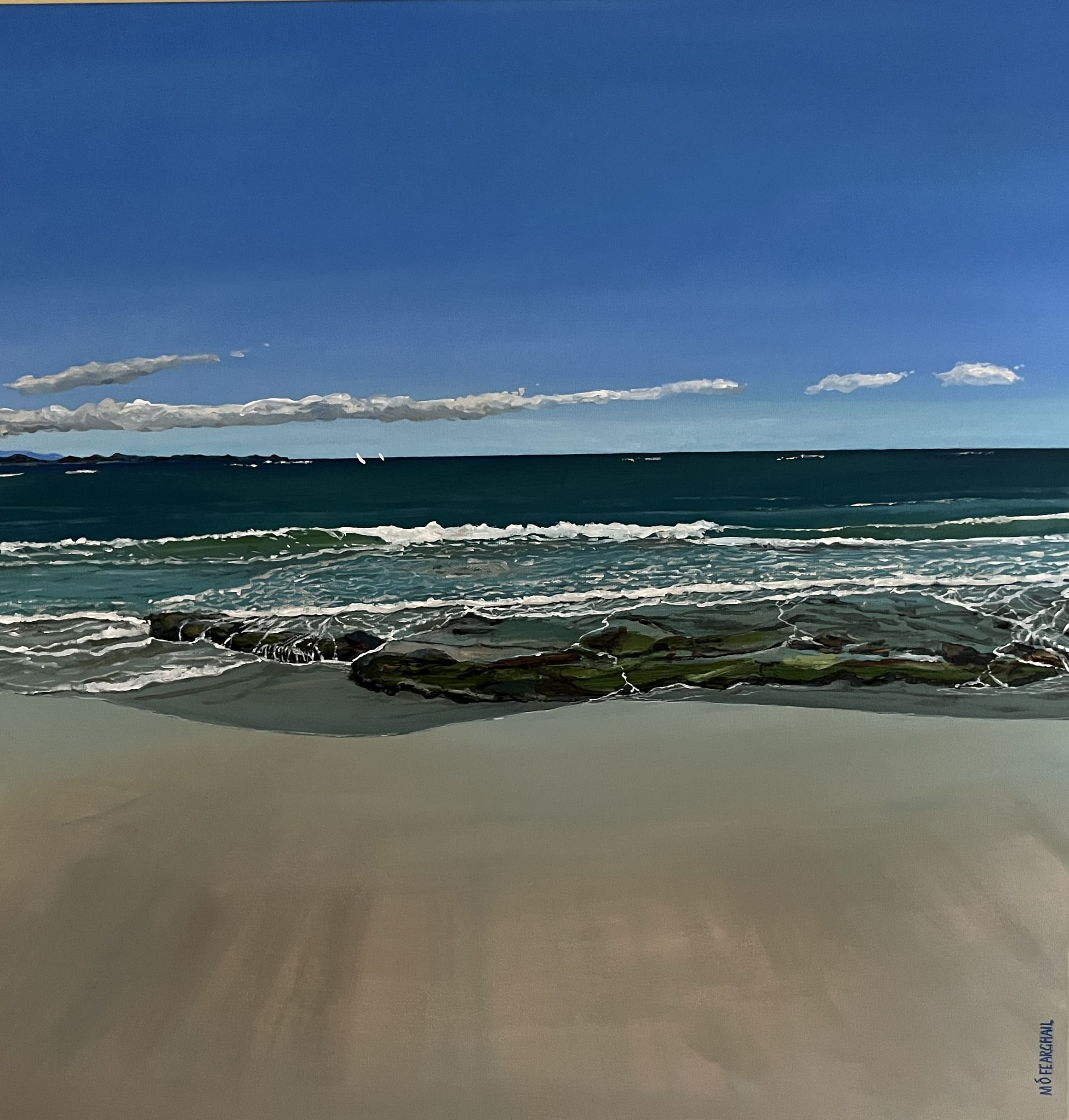 Original acrylic painting two foot square on canvas, featuring a section of the Grande Playa, near Corralejo.