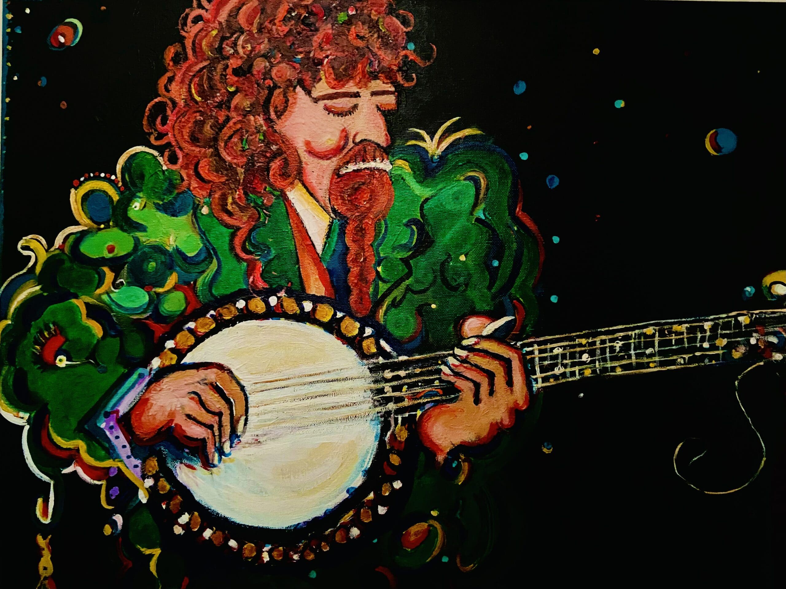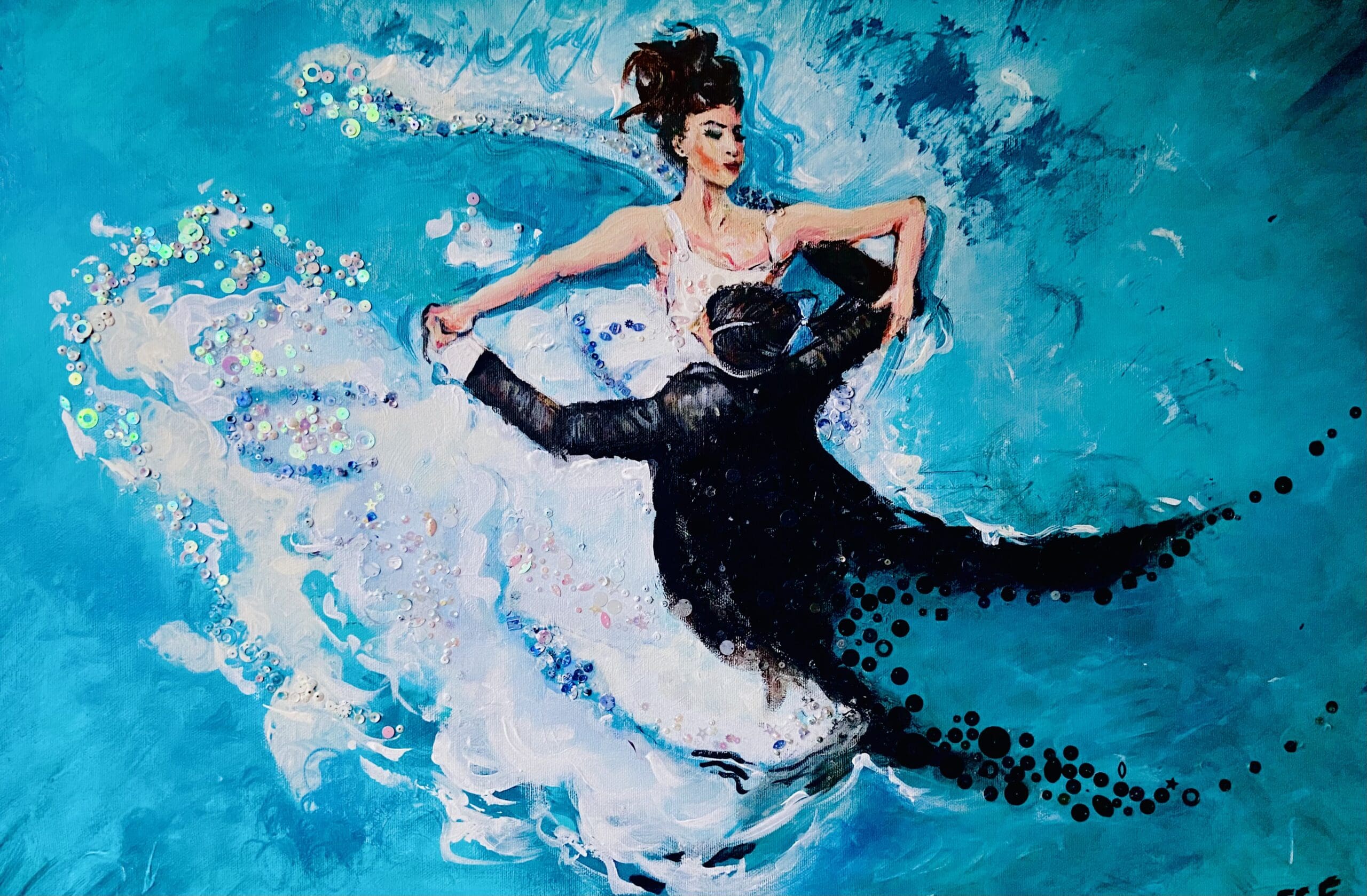 I love to use of vibrant colours when l paint and am very influenced by music and dance at the moment.