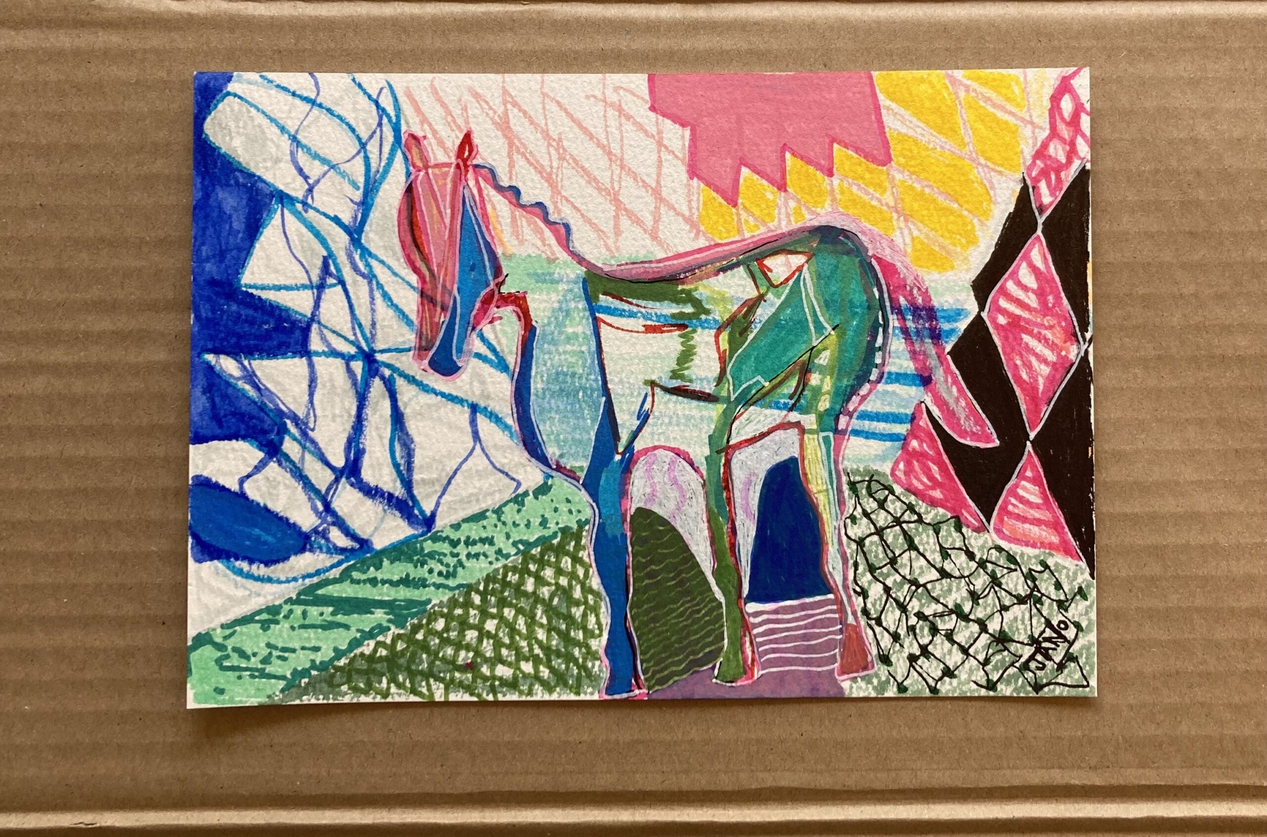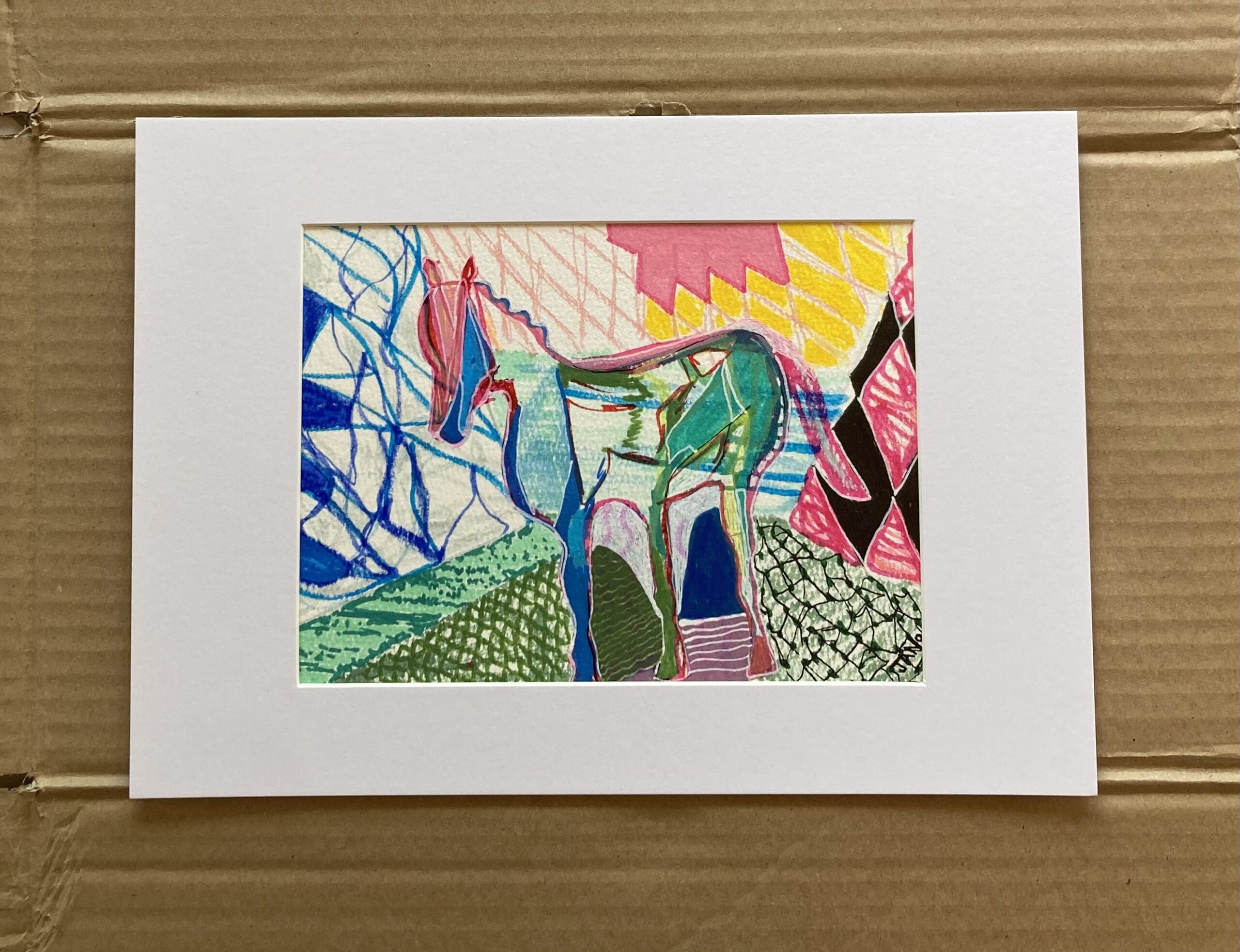Materials: Drawn / painted artwork in acrylic on 300gsm watercolour paper with grain, mounted in white card mount. suitable for framing in A4 frame to suit your space.