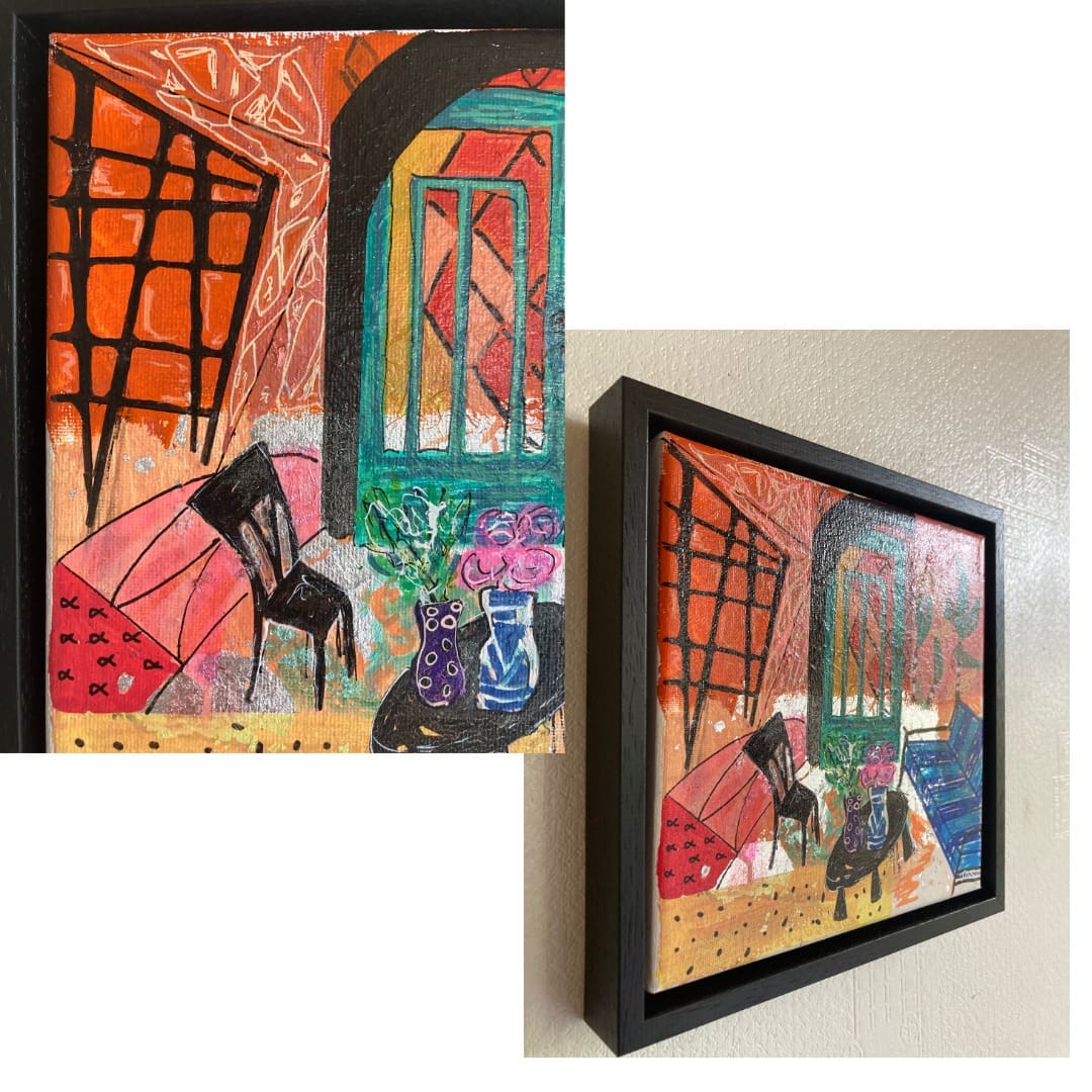 Eclectic – Contemporary interiors styled original artwork for your curated space, framed in a black wooden frame. With some metallic foil used for extra sunshine.