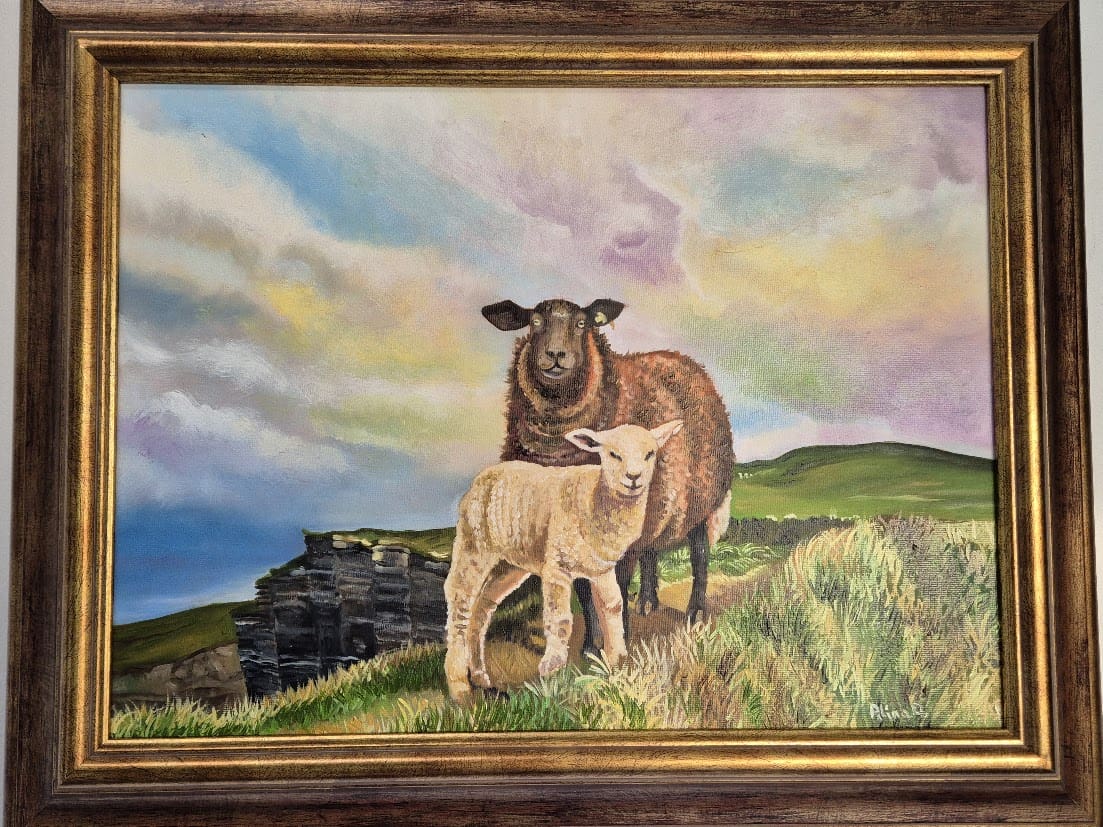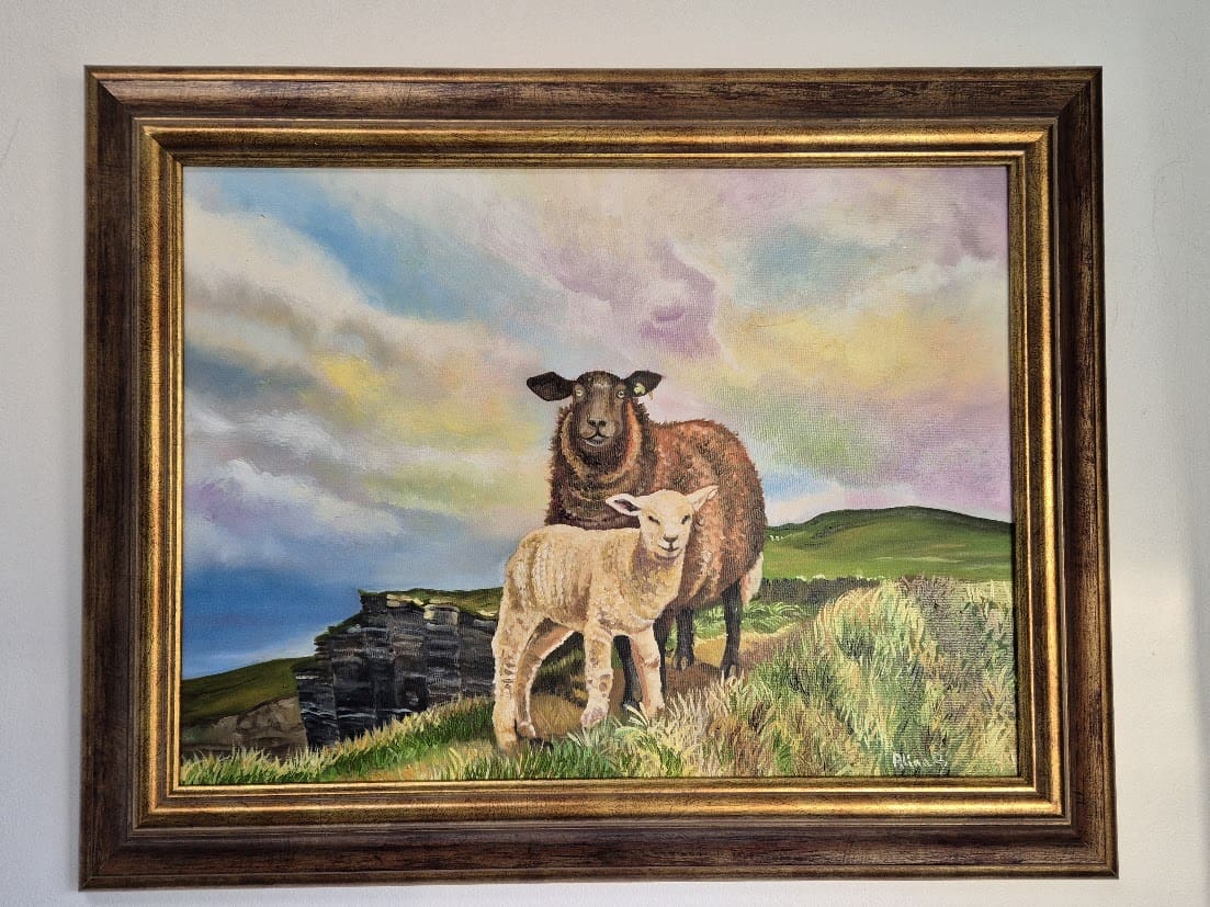 Image depicts a sheep and lamb up on the fills of Cliff of Moher.