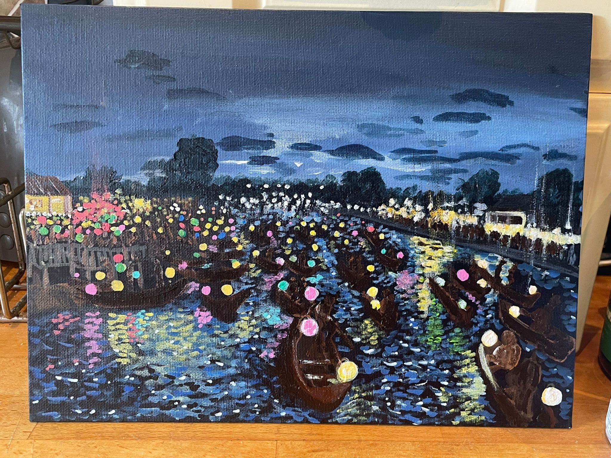Acrylic painting of lantern festival in Hoi An Vietnam