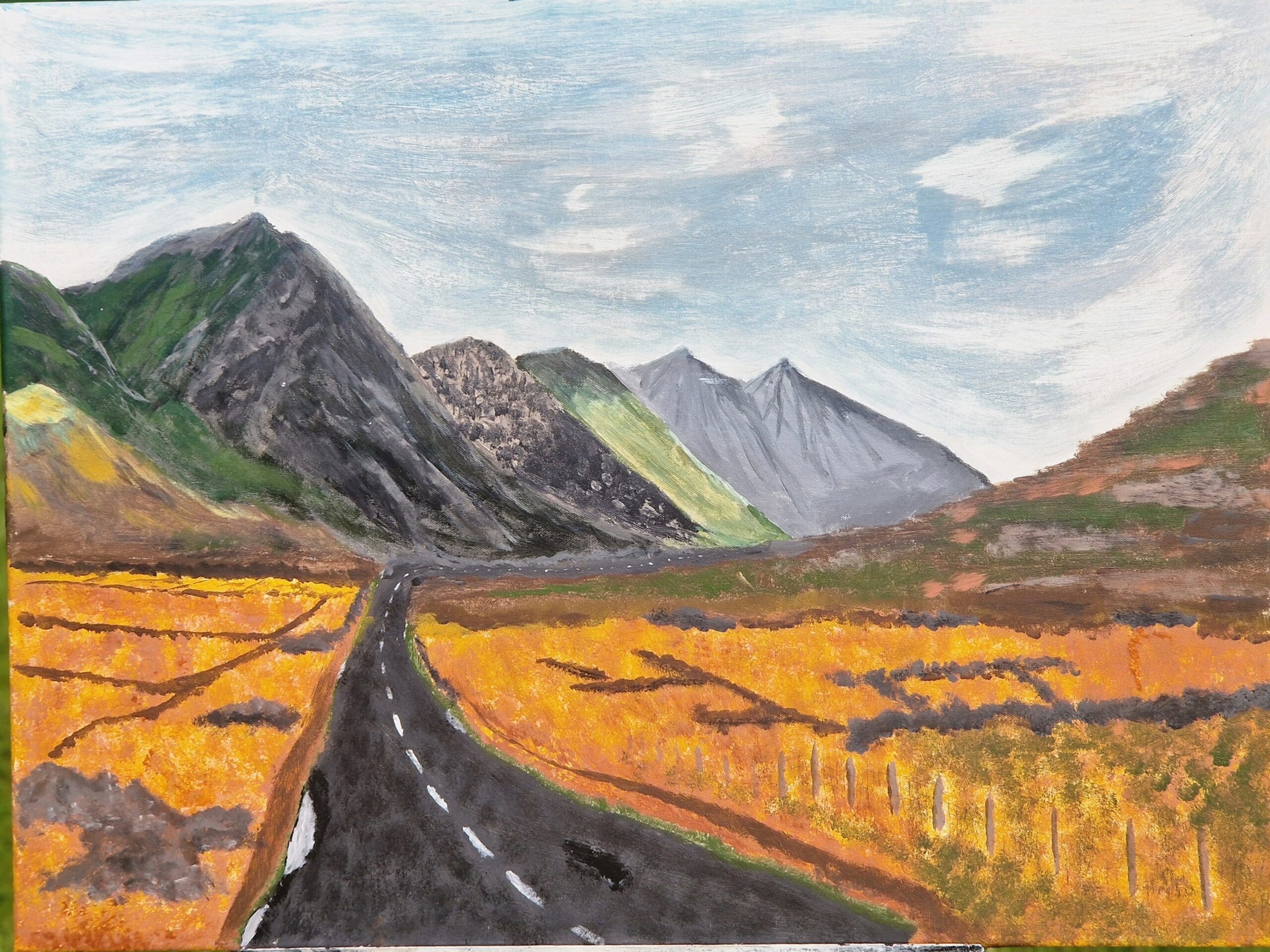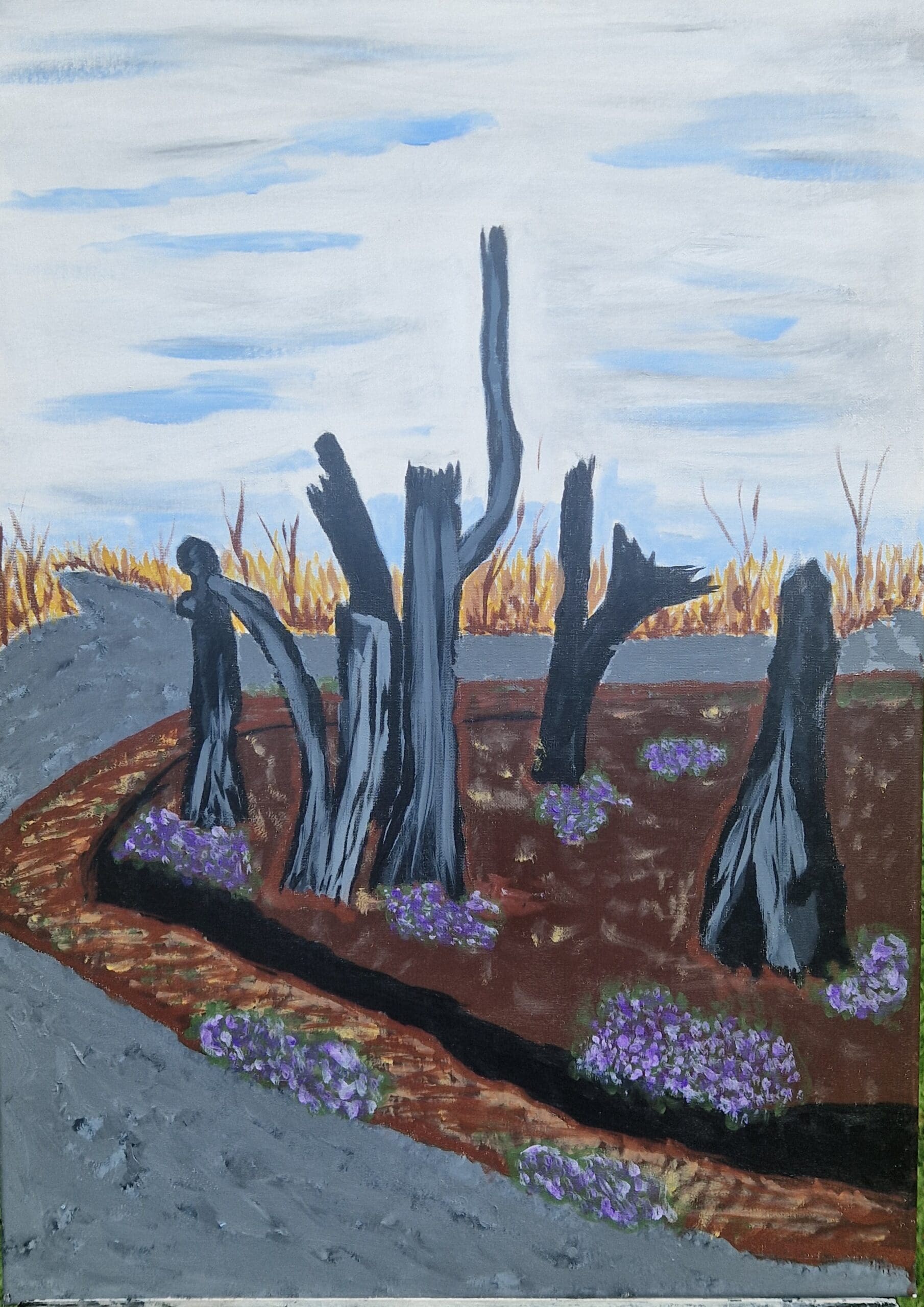 Longford based, father of 2, recalling the scenes of our wandering around the countryside! Acrylic on canvas, but recently exploring oil and sculpture.