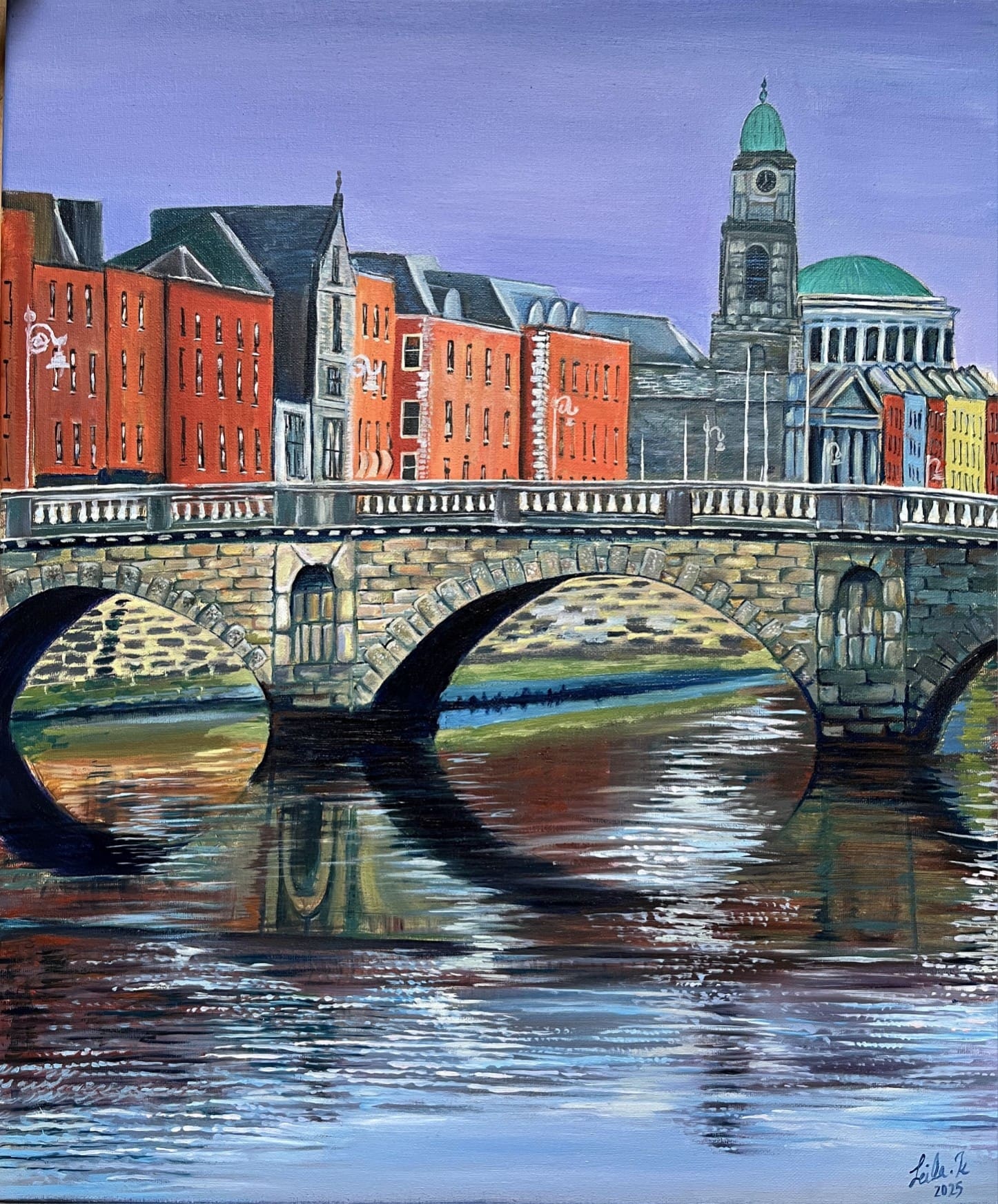 Bring the charm of Dublin into your home with this original oil painting of Mellows Bridge, looking towards Arran Quay. Expertly painted in vibrant oils, this artwork captures the serene River Liffey, the historic bridge, and the atmosphere of Ireland’s capital.