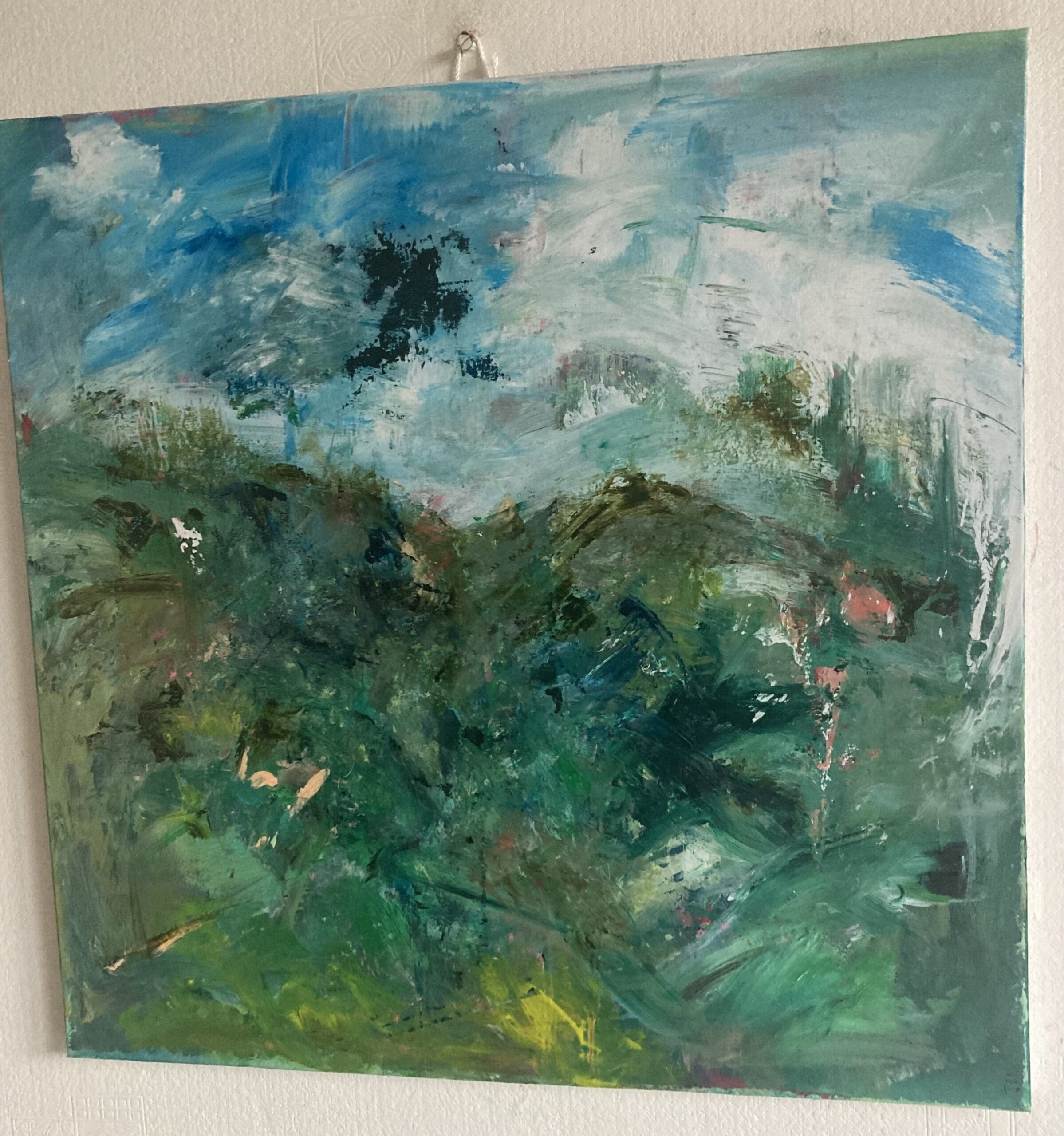 Original Abstract Painting mountain valley painting, inspired by the Dublin and Wicklow mountain valleys but is representative of a lot of lush Irish valleys.