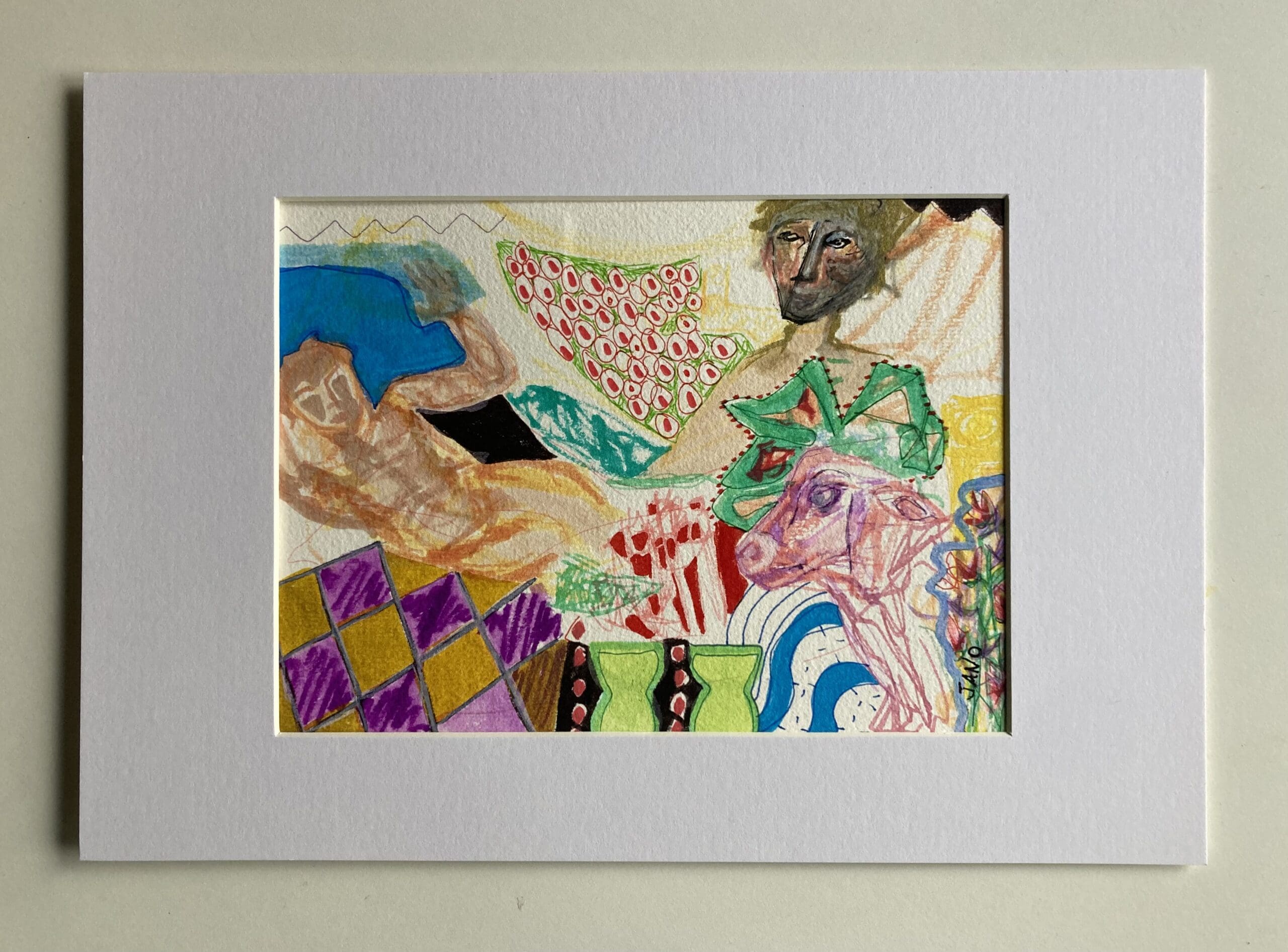 Materials: Drawn / painted artwork in acrylic on 300gsm watercolour paper with grain, mounted in white card mount. suitable for framing in A4 frame to suit your space.