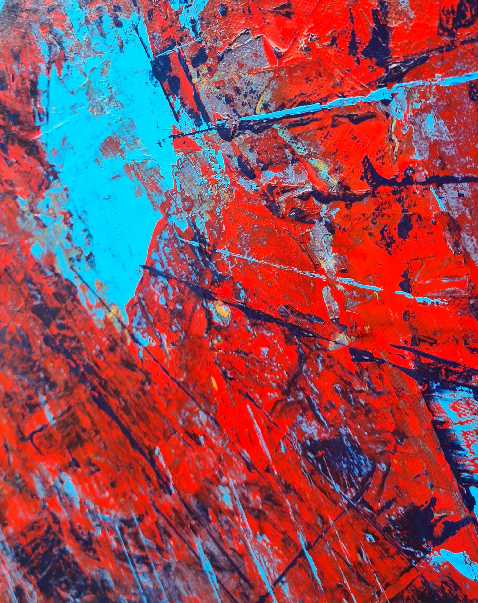 The abstract I create focuses on the tension between chaos and harmony — contrasting vibrant color fields with subtle marks. Each painting is an emotional landscape, inviting the viewer to interpret their own meaning through color, form, and texture.