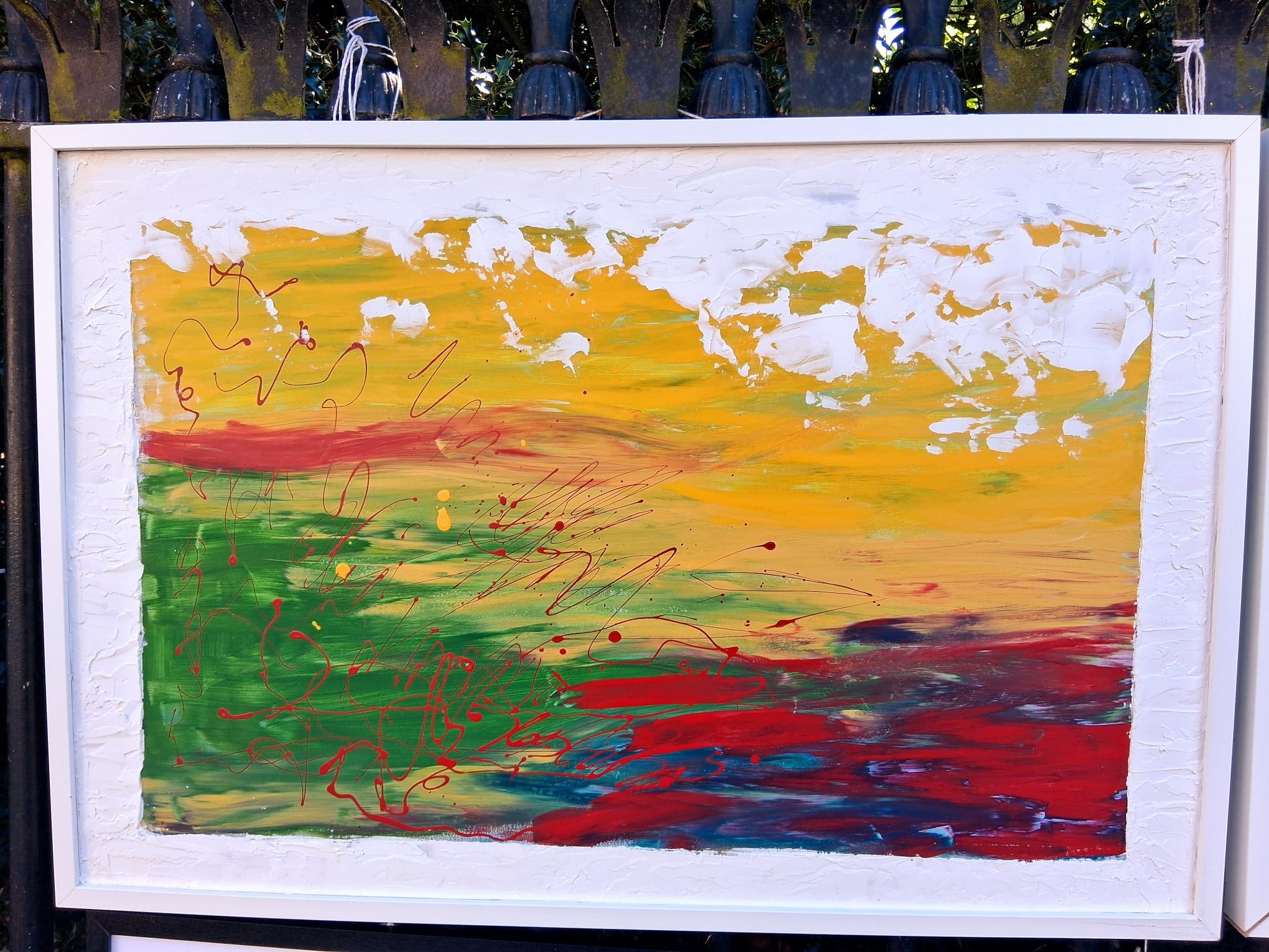 Mixed media on canvas aprx. 50 cm x 75 cm, with black frame aprx. 63 cm x 93 cm