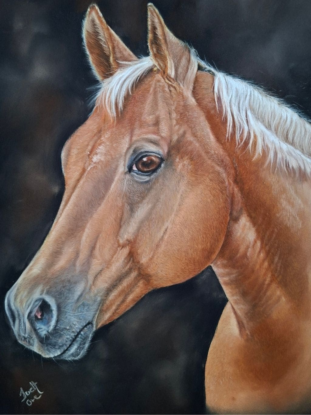 Features: Original Handmade Equine Artwork | Soft Pastel Pencil | Horse Portrait | Realistic artwork | Palomino wall art