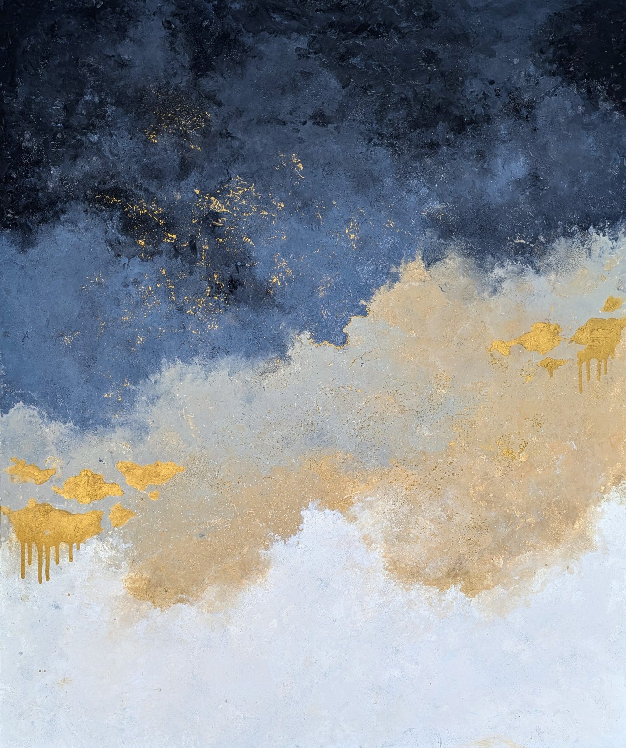 Inspired by the Greek God Prometheus and his relationship with the Earth (natural pigments) and Olympus (dark clouds, specks of gold).