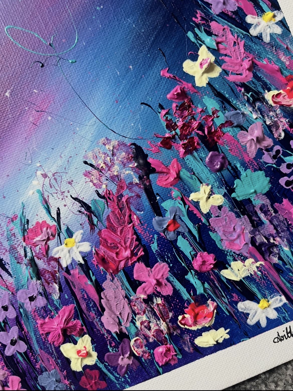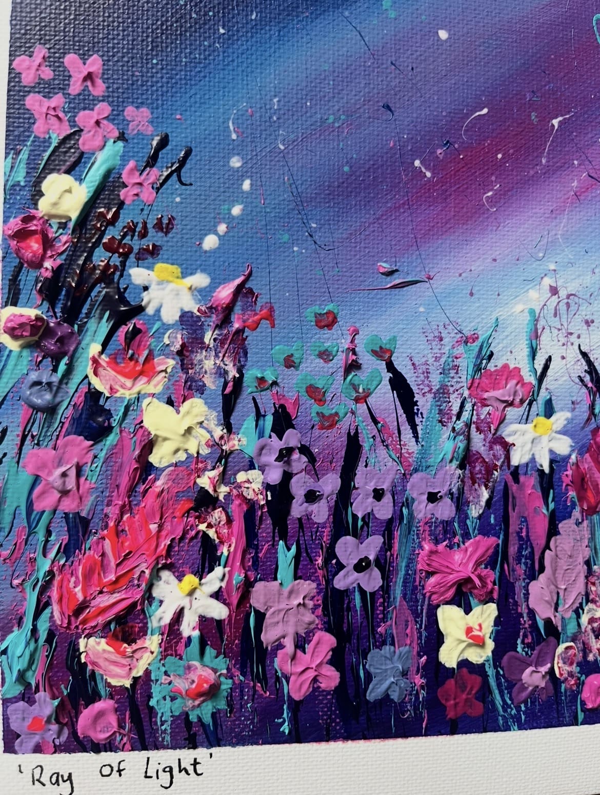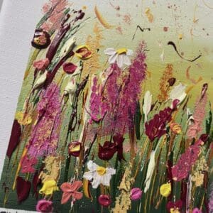 I paint using acrylic paints where my palette consists of bold, vibrant colours and I love adding texture to each piece to really bring my art to life.