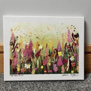 I paint using acrylic paints, where my palette consists of bold, vibrant colours and I love adding texture to each piece to bring my art to life.
