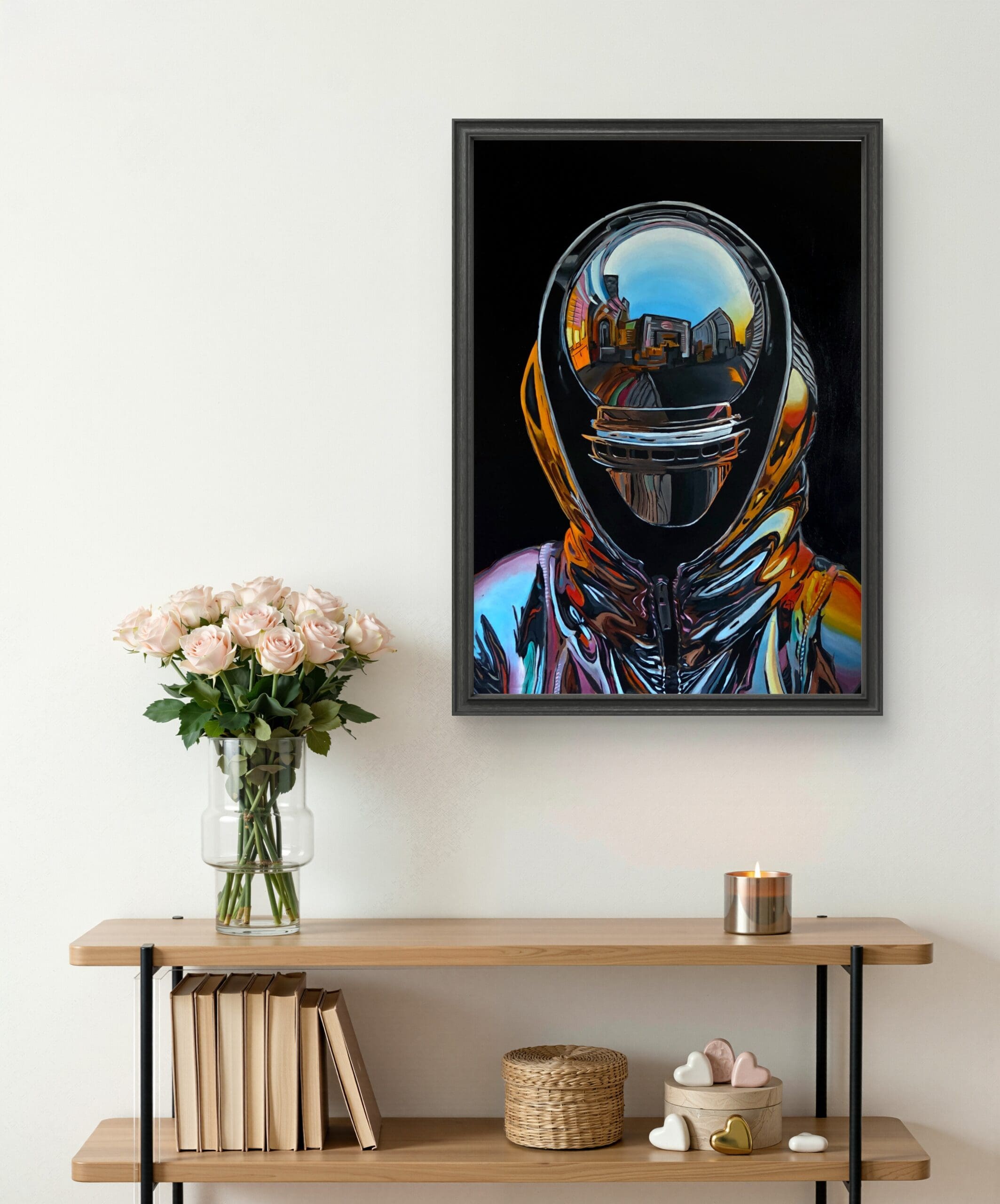 Colourful portrait piece of chrome being. Produced on a 60x95cm stretched canvas with a satin varnish finish