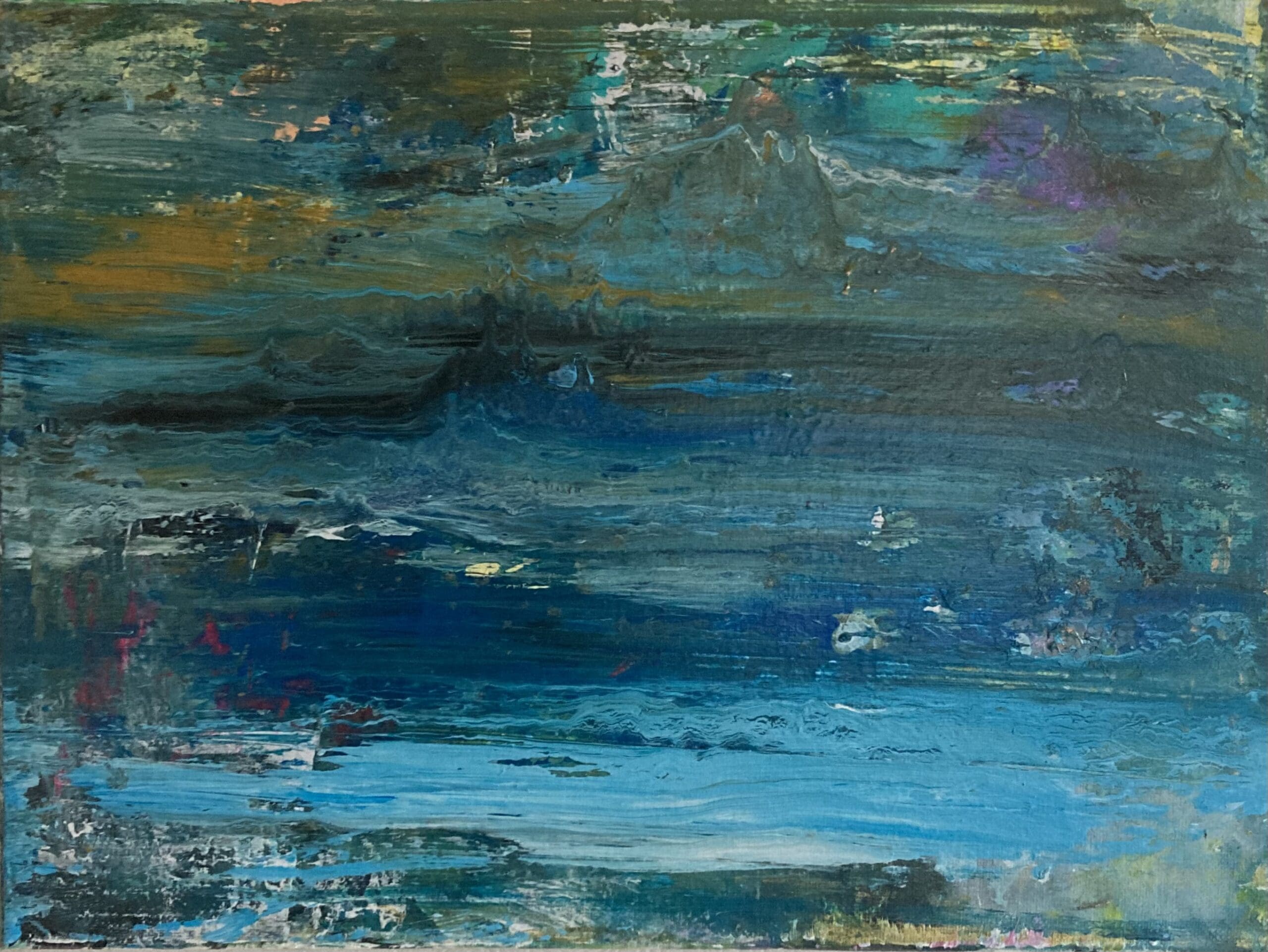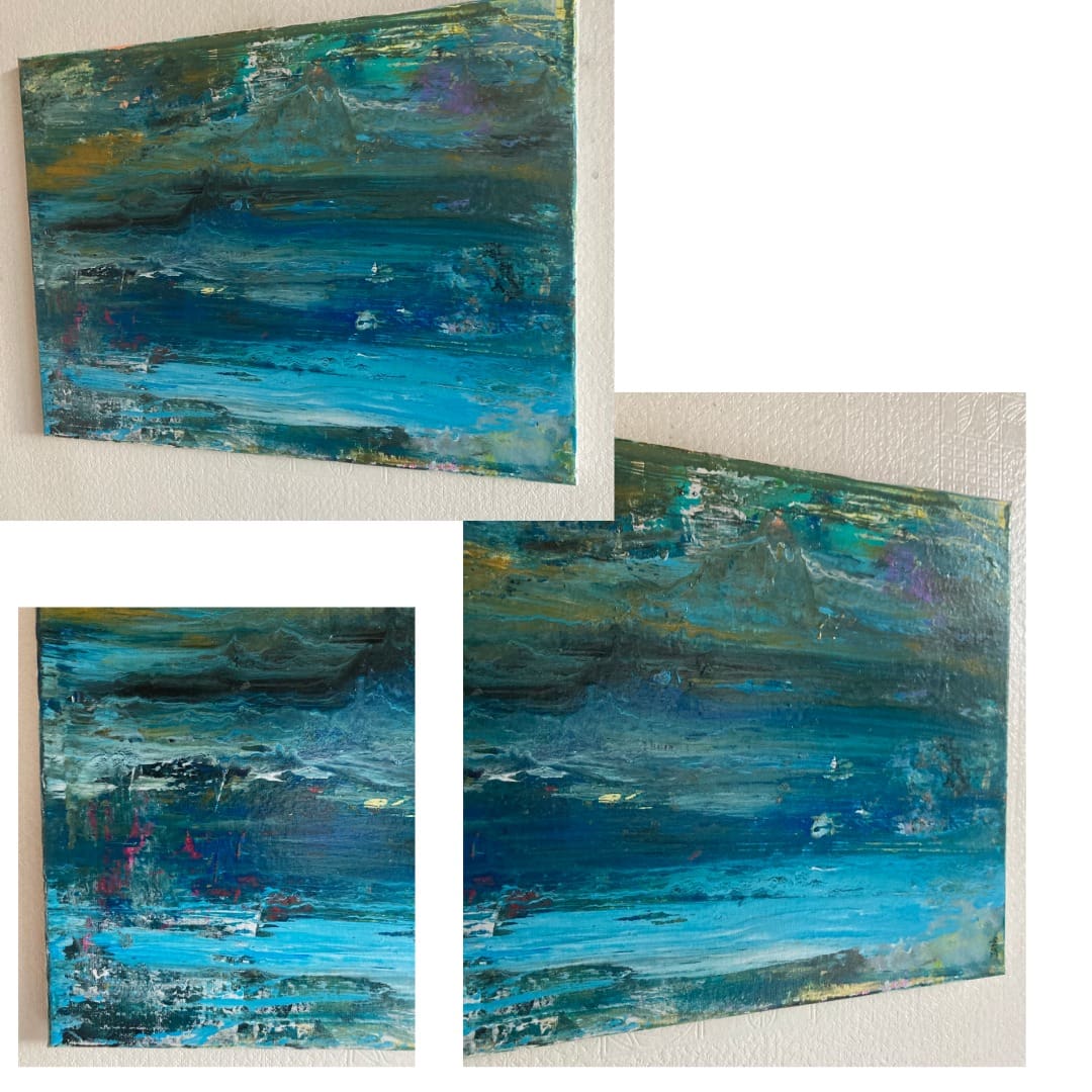 Original seascape in abstract with movement and depth. Is a perfect size to frame up into a larger piece to suit the dimensions of your space, should cost under €100 to frame in Ireland.
