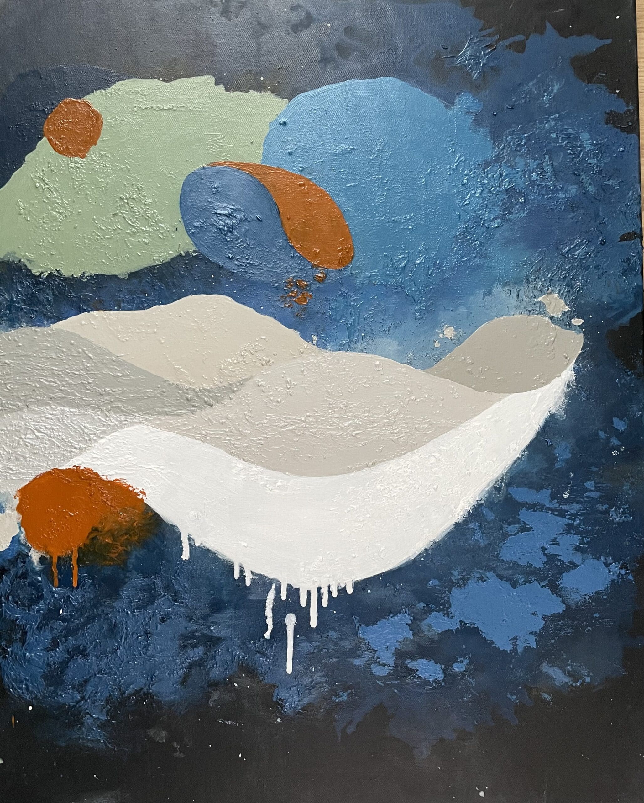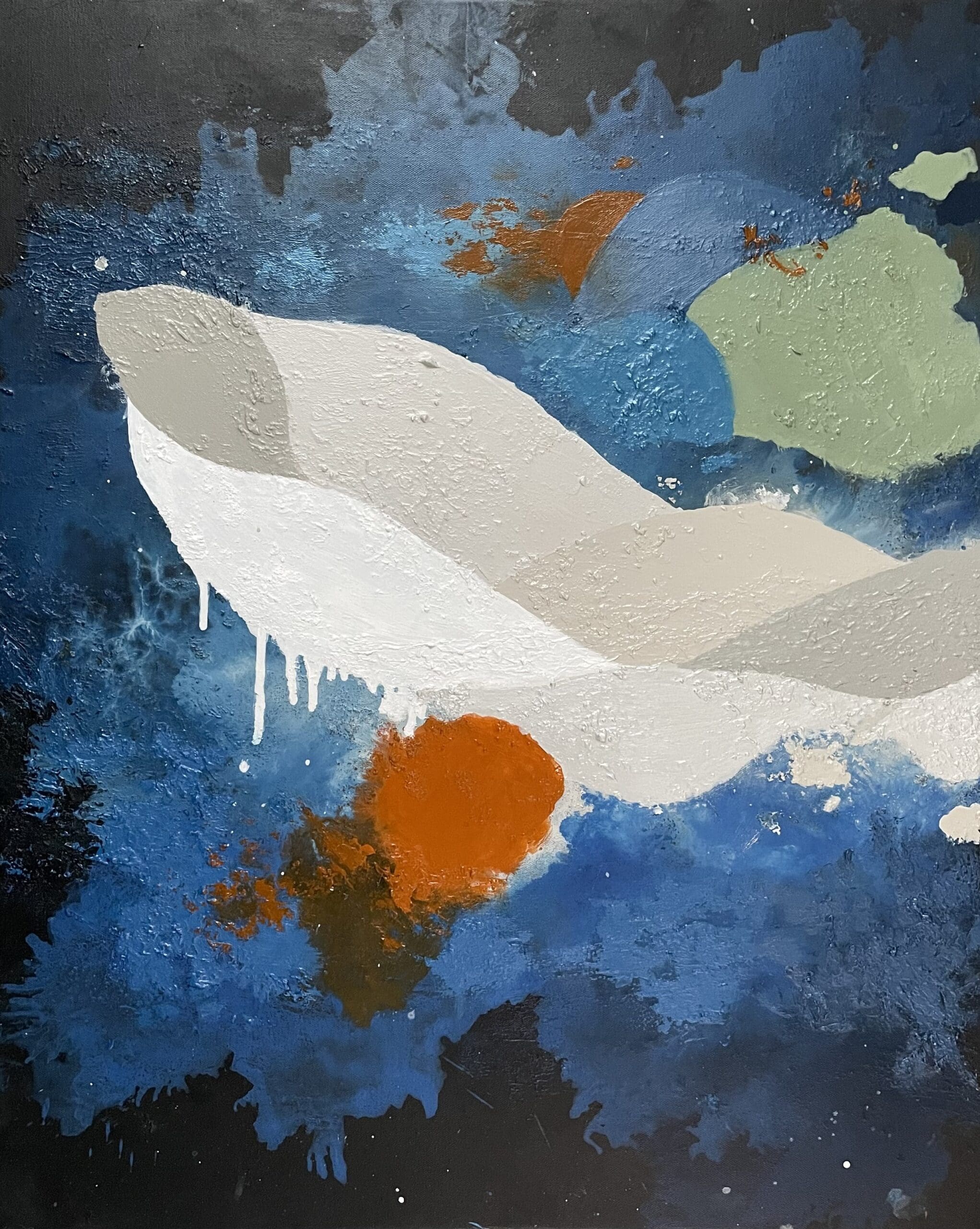 I create original abstract paintings with natural pigments, sand, organic materials and reclaimed fishing ropes from the Irish Coast.