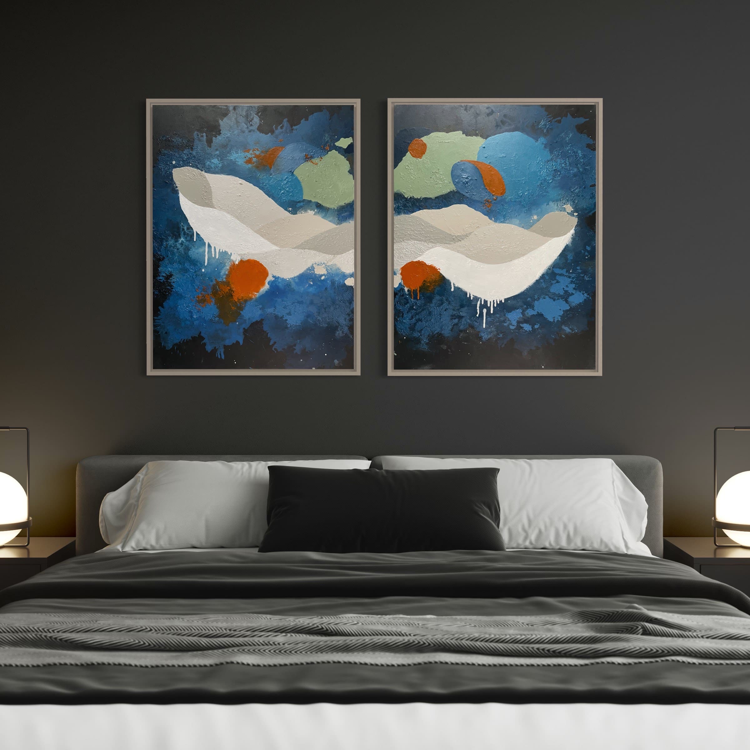 Original abstract artwork, the unique texture is created by using black sand from Brittas Bay and acrylic paint. Paintings can be framed upon request!