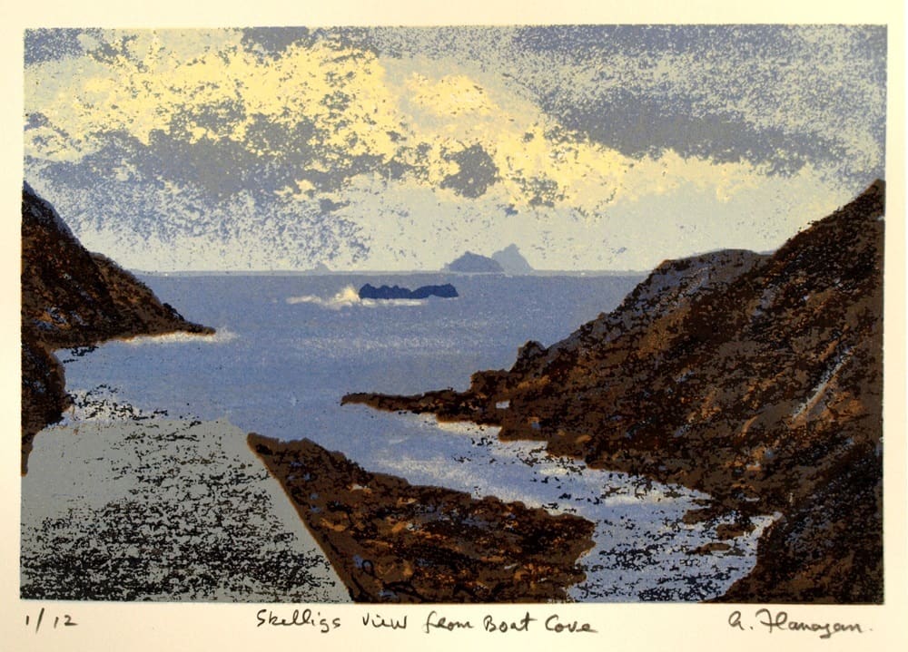 This screenprint of the Kerry landscape was printed in Aug 2010 and consists of 11 layers, and is printed in a Limited Edition of 12 prints.