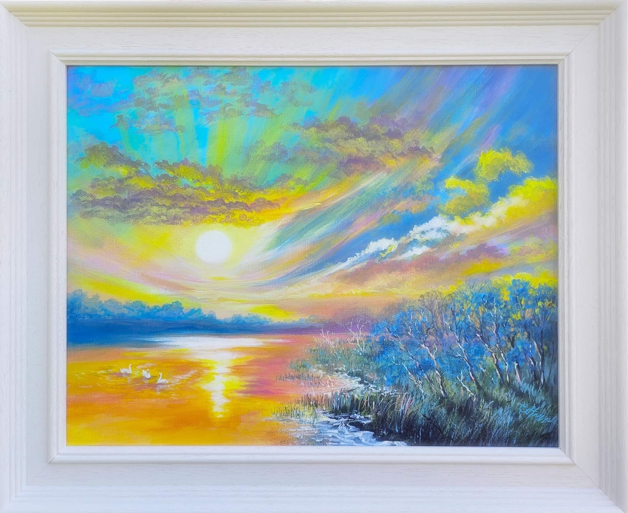 Can you imagine sitting by this tranquil lakeside as the day turns into night, the sun gradually descends below the horizon, it casts a warm glow across the lake.