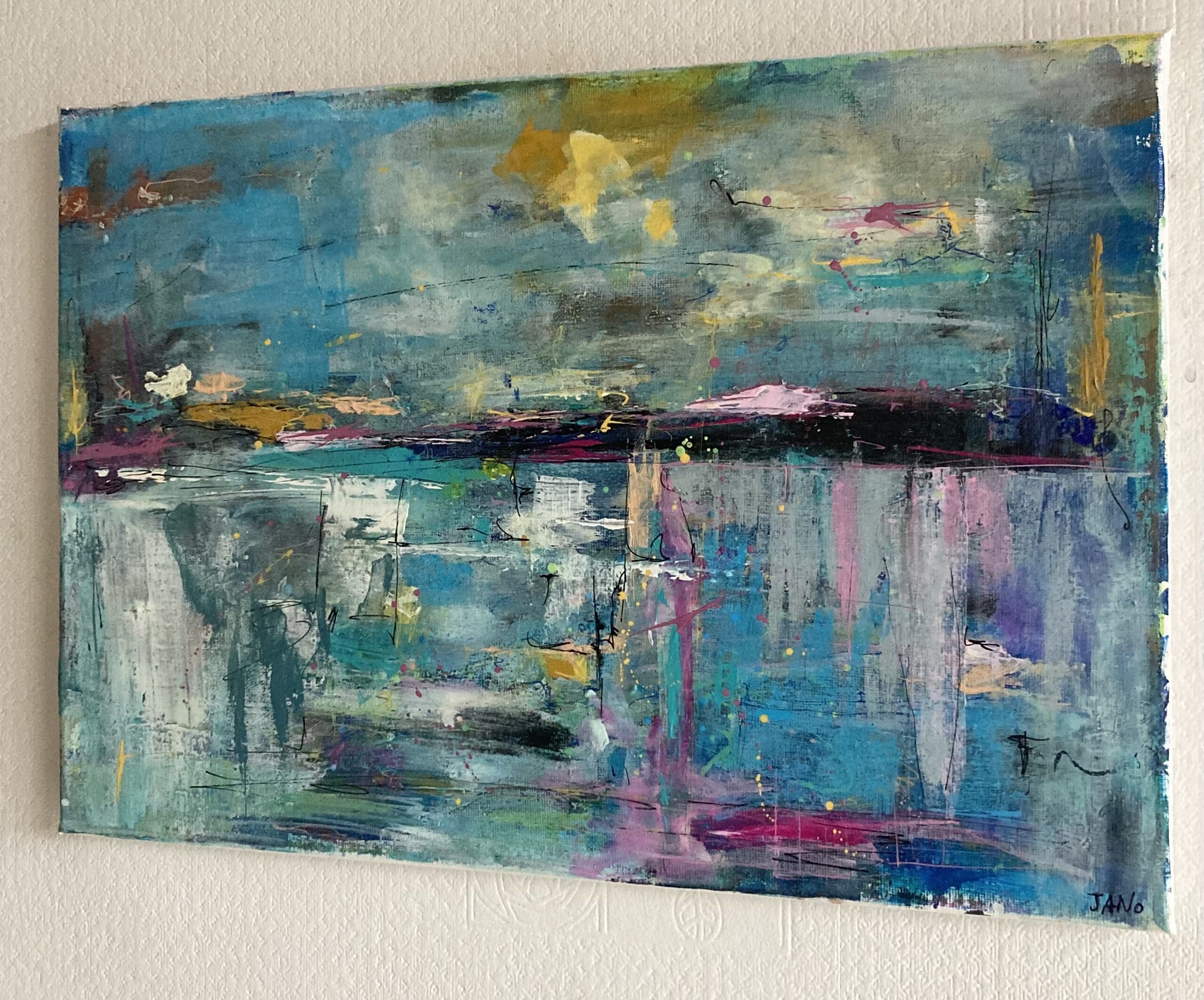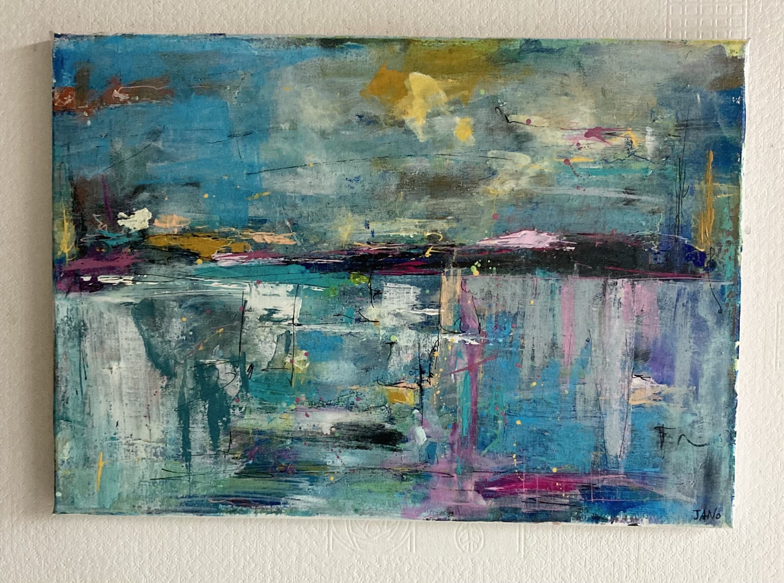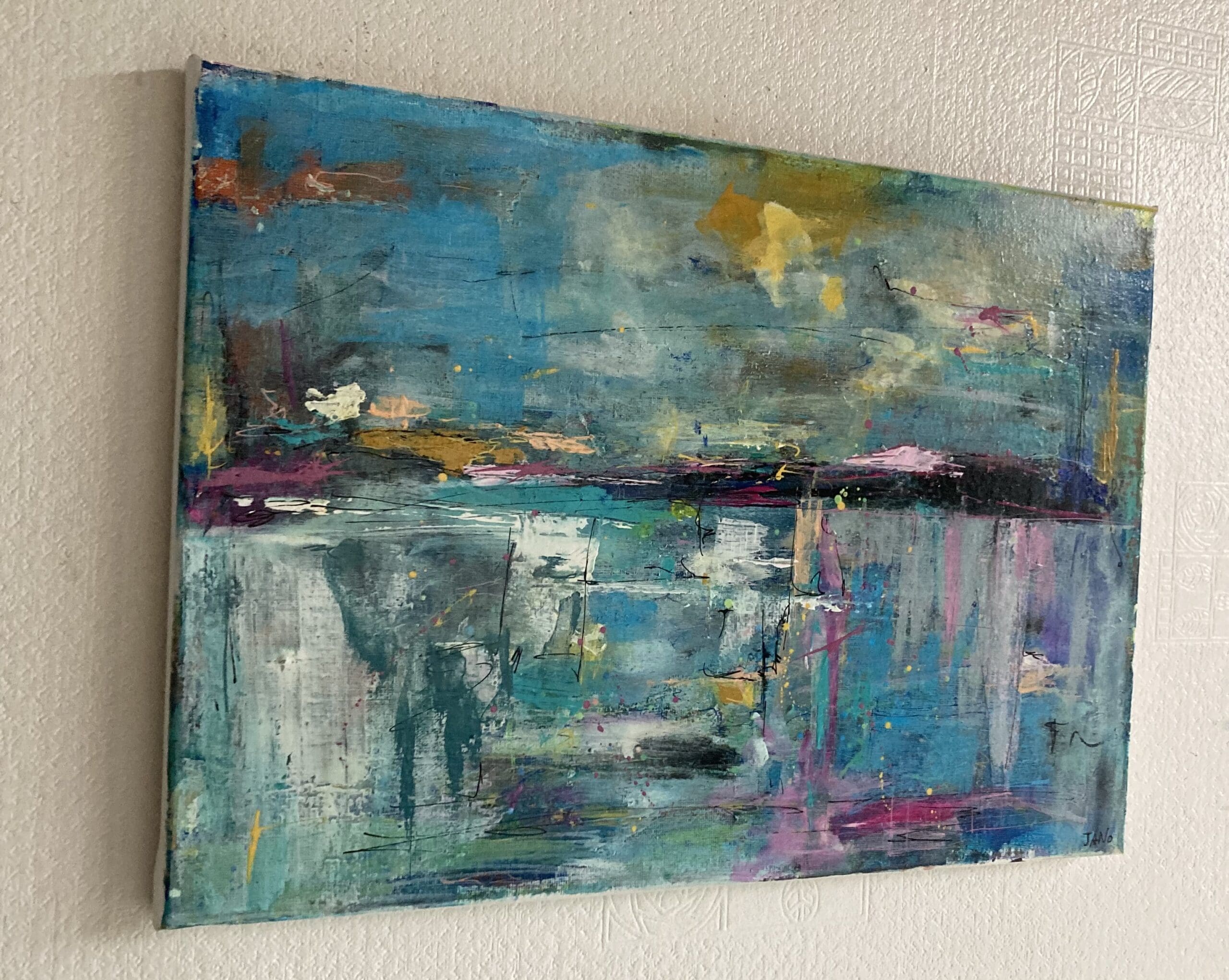 Seascape in abstract with beautiful details, colour pops and abstract techniques used to create this artwork with depth. While being sold unframed, please reach out to me if you’d like it framed as my stock is currently low in this sized artwork.