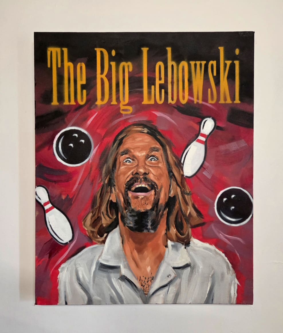 Portrait oil painting of ‘The Dude’ from the file The Big Lebowski. Produced on a deep edge stretched canvas with a satin varnish finish