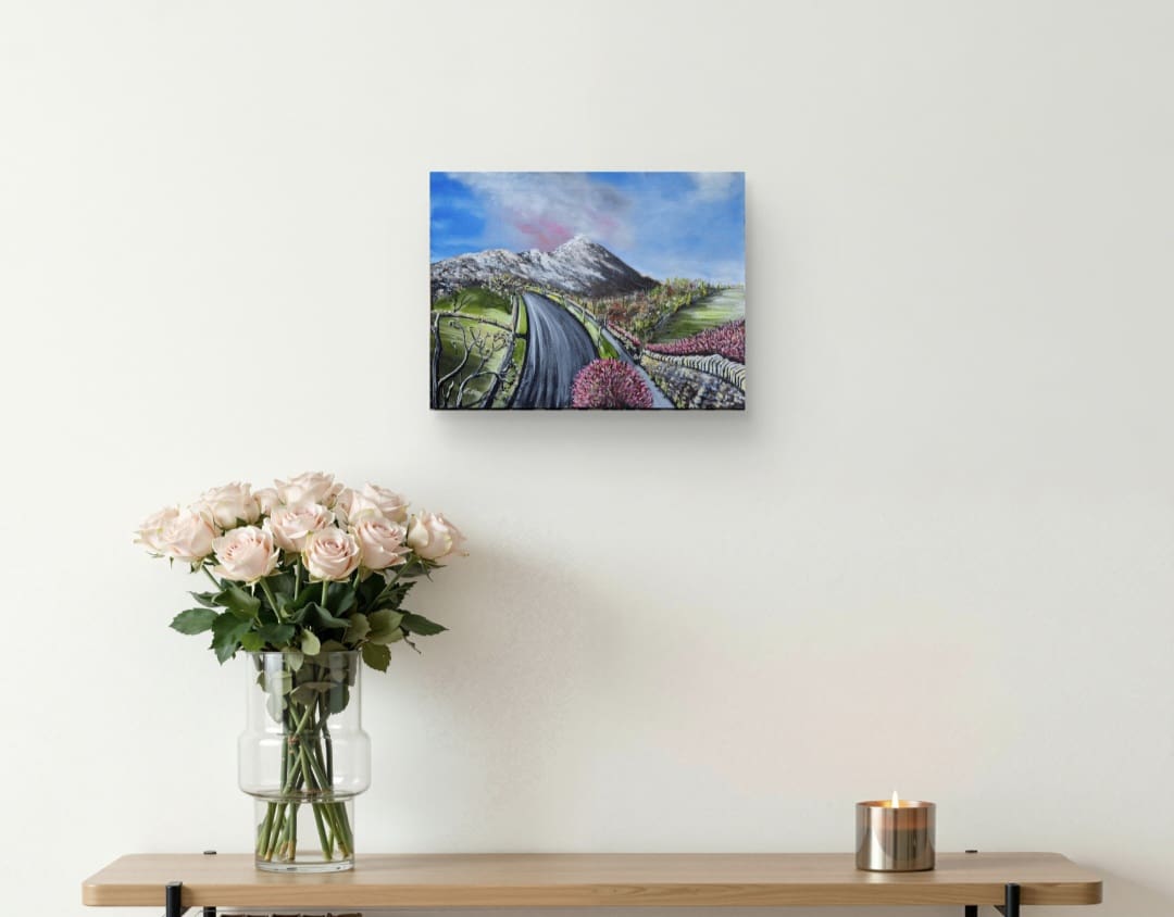Oils on canvas. I love to paint Irelands landscapes, I like to focus on well known places aswell as the stunning peat lands on the West. I like to pick out and enhance the tiny colourful flowers on the bogs, to show how beautiful they are and we should treasure them in every way. On from that I express my love for flowers by creating original pieces of just flowers on their own . I also except commissions