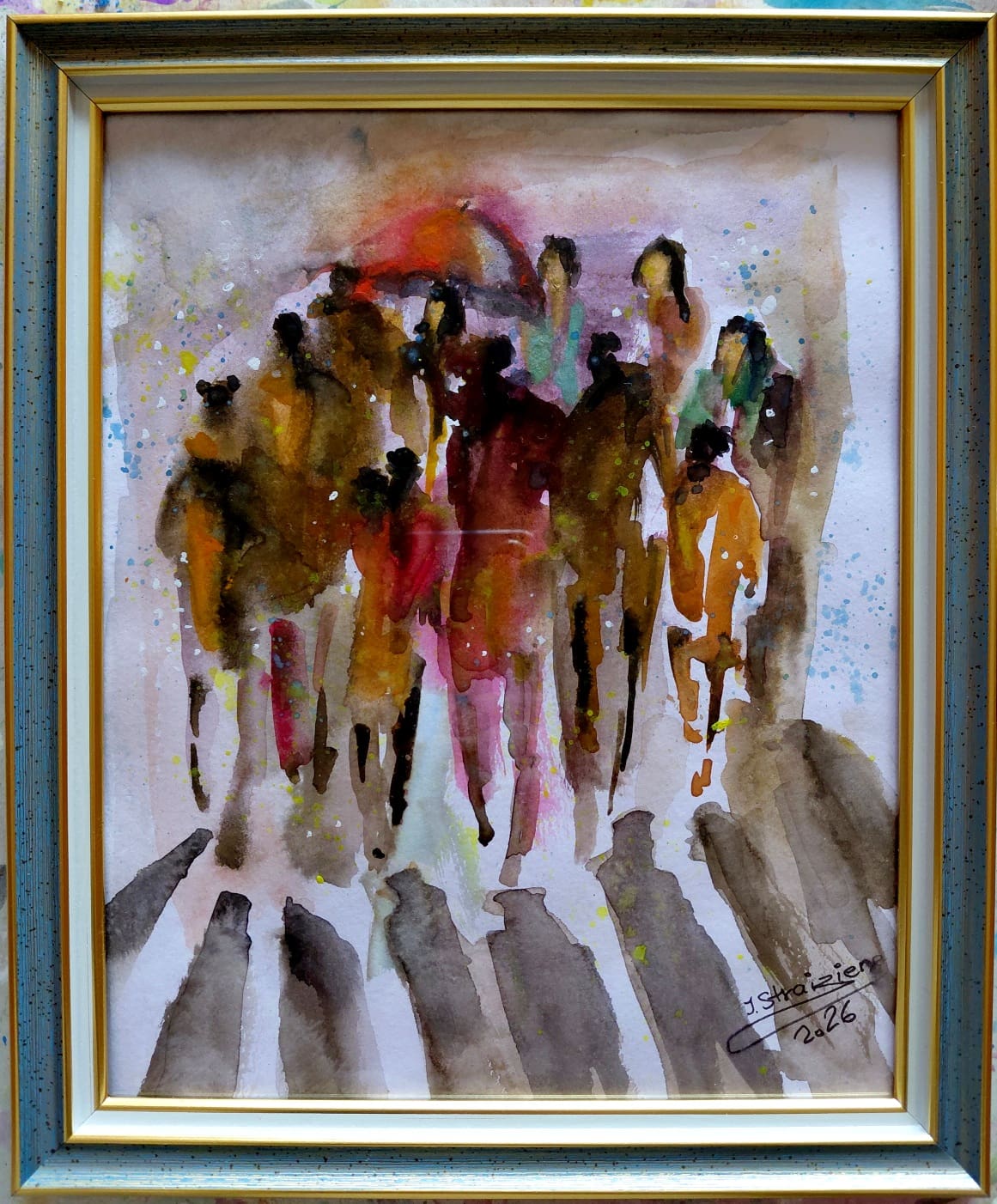 City lights reflected in raindrops, architectural fragments of old streets, all the moods and emotions I write in my imagination to then pass through colours and lines.