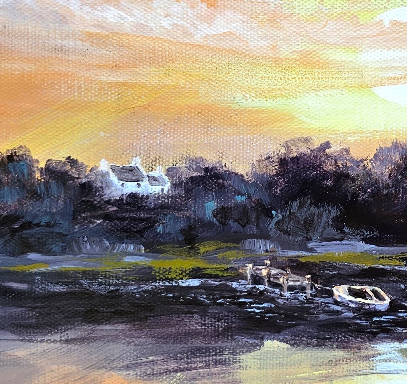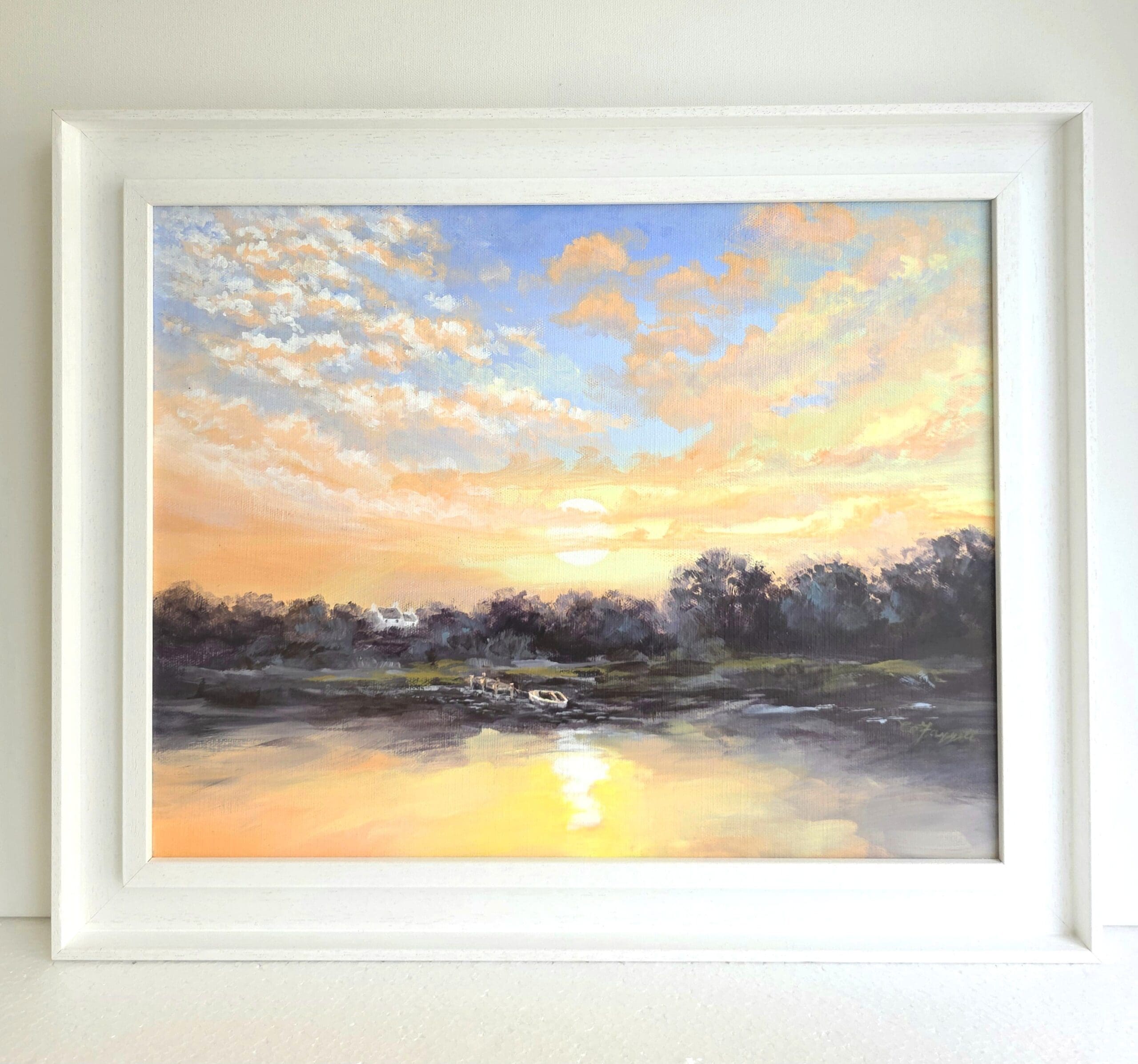 An original one-of-a-kind sunset landscape painting on a high quality gallery canvas.