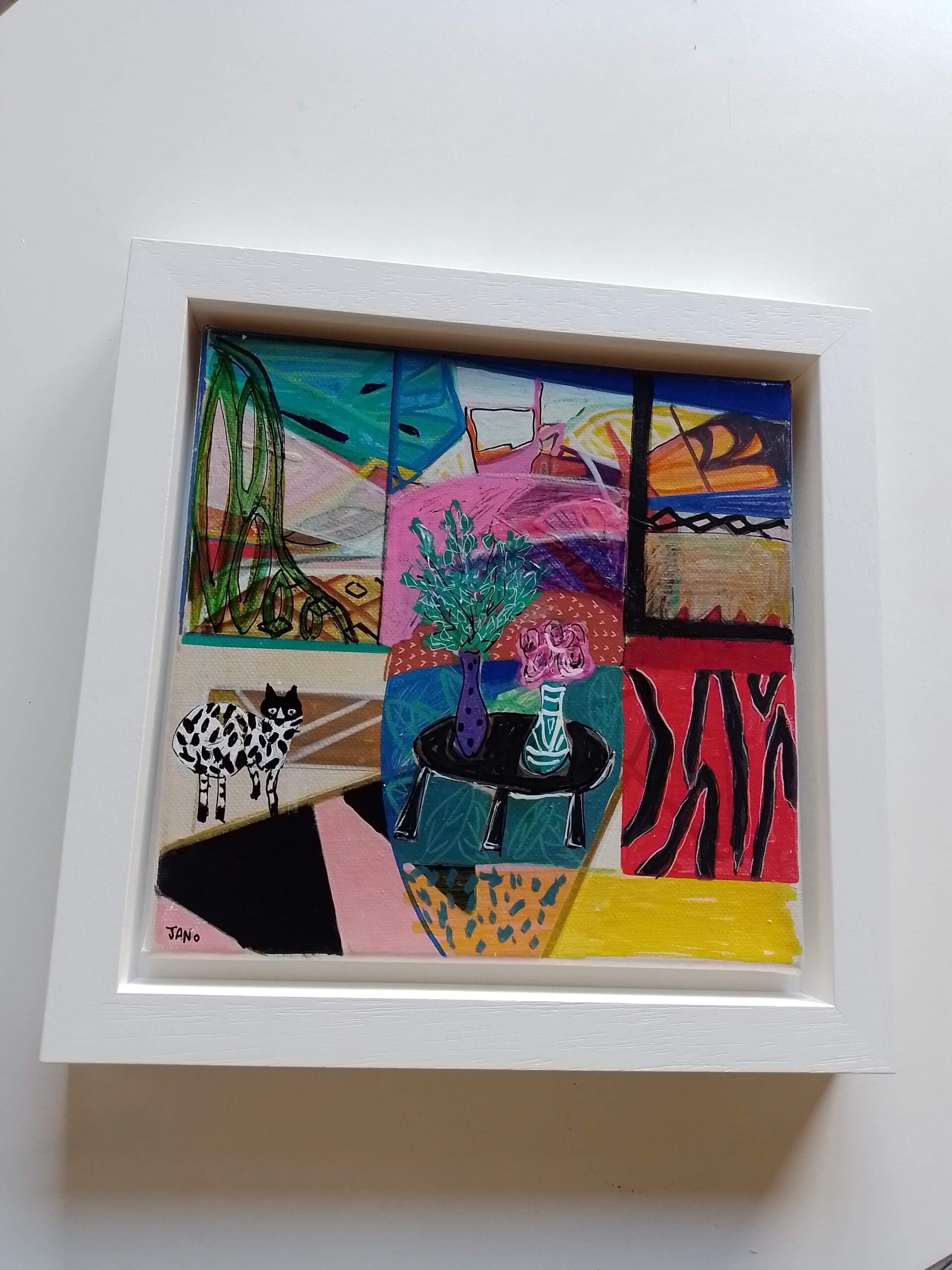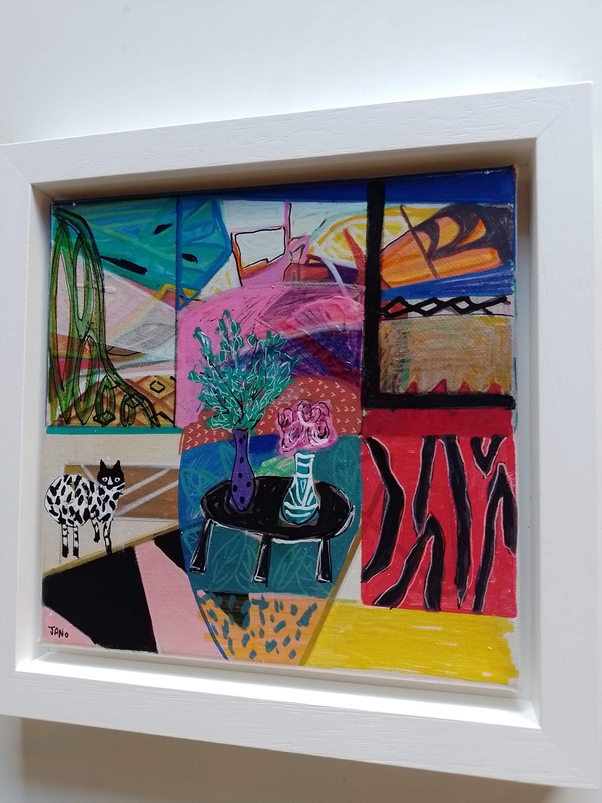 Eclectic – Figurative – Contemporary original artwork for your curated space, framed in a deep wooden tray frame.