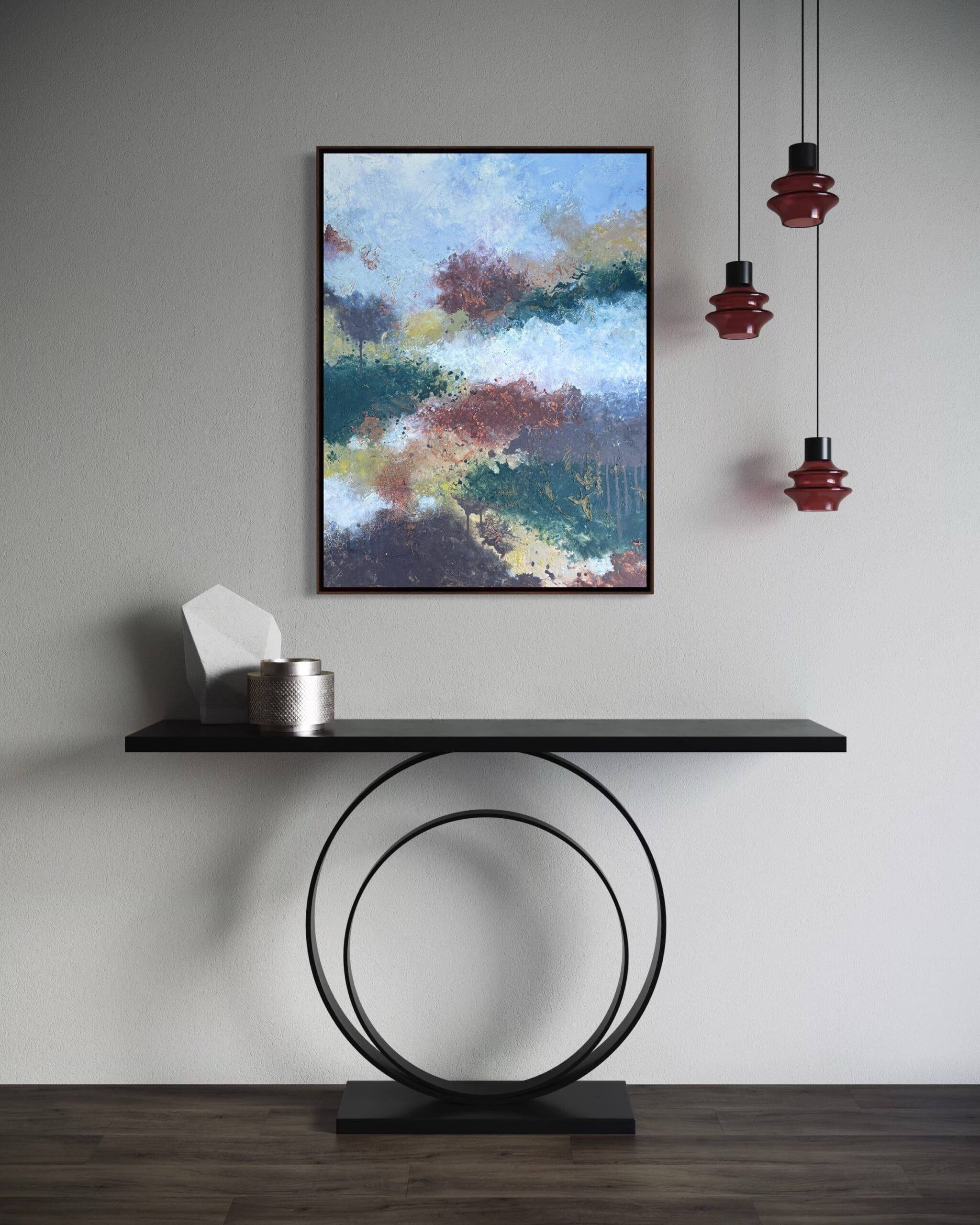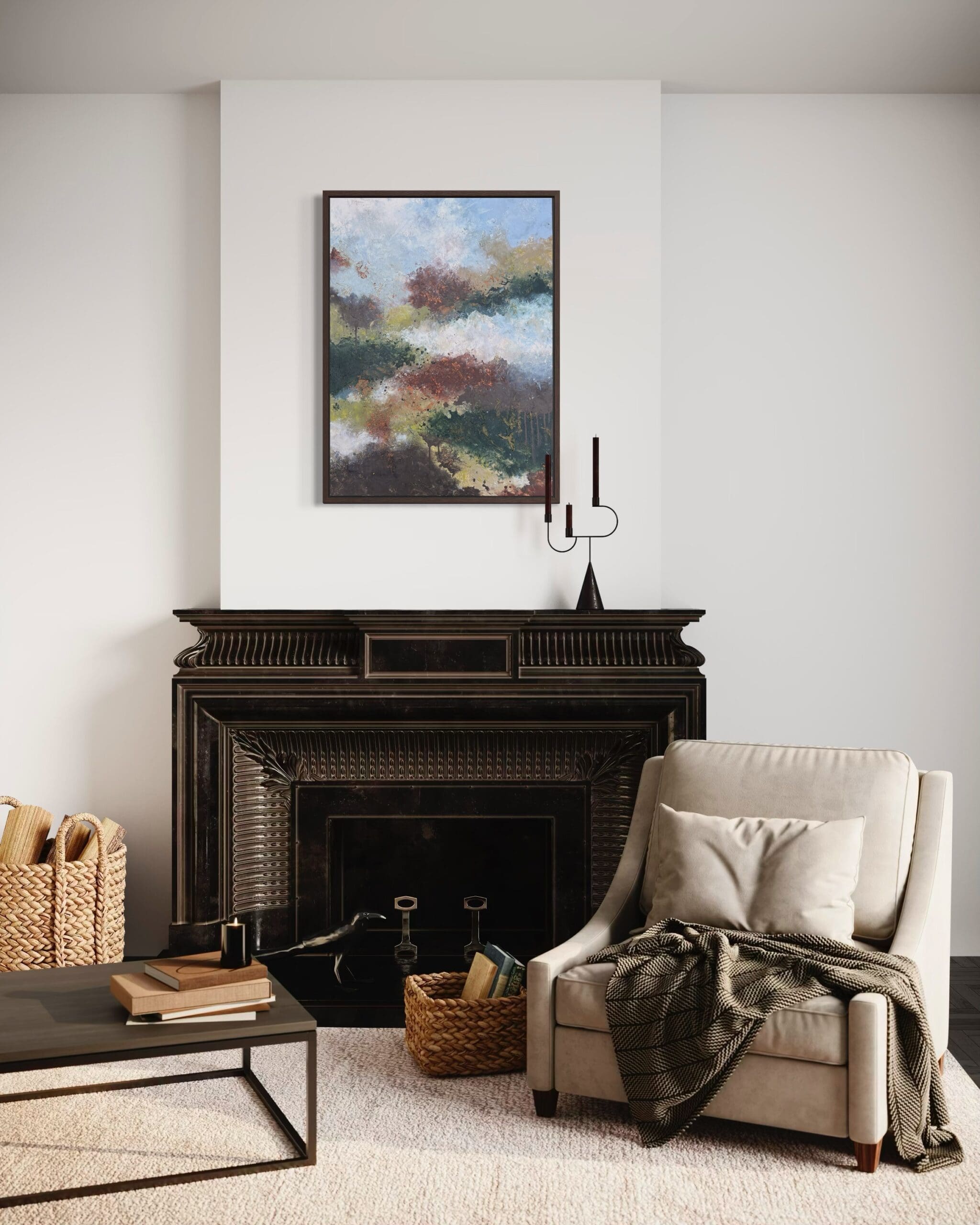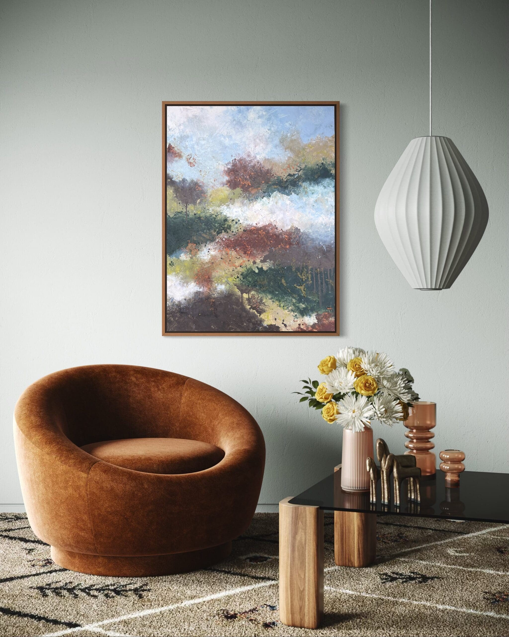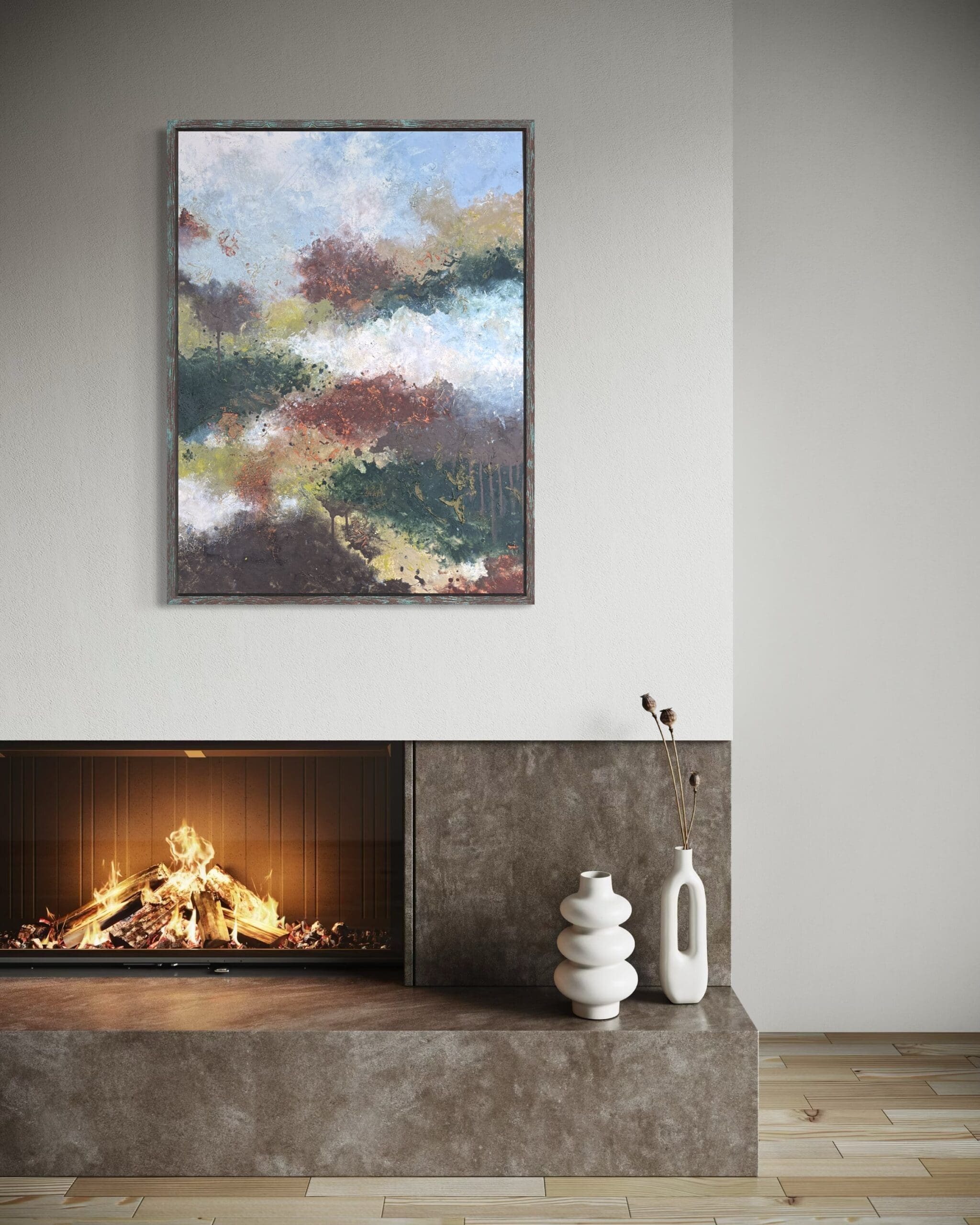 The distinct look and feel of this artwork was created by using pieces of dried leaves, fern and fir needles collected in the depths of the Ballinastoe Woods. This artwork is on high quality stretched canvas and finished with a light satin varnish to protect from dust and sunlight.