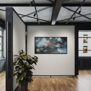 The distinct look and feel of this artwork was created by using pieces of dried leaves, fern and fir needles collected in the depths of the Ballinastoe Woods. This artwork is on high quality stretched canvas and finished with a light satin varnish to protect from dust and sunlight.