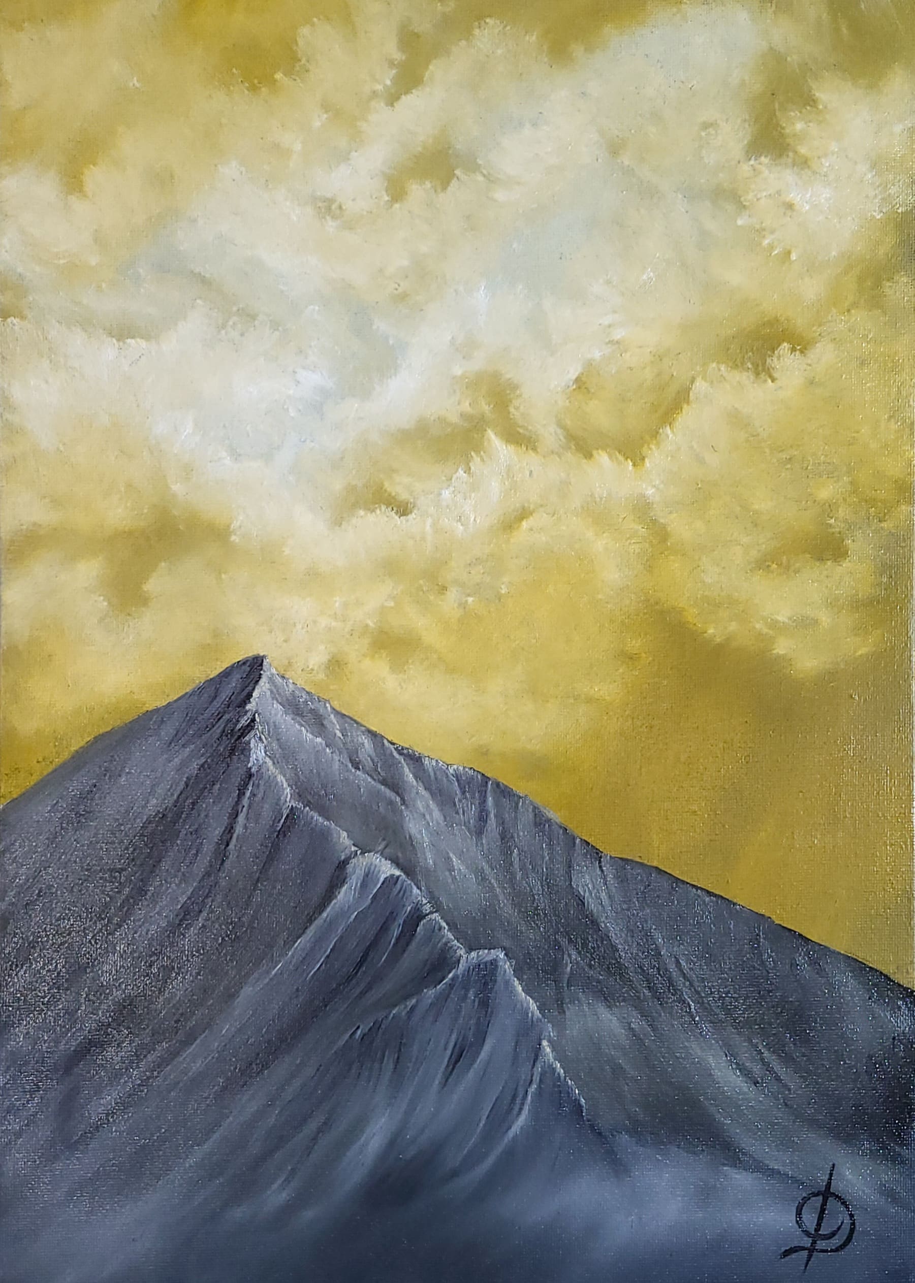 Oil on stretched canvas, 42 x 30 cms (A3), #416. Its the sky that draws me into this piece with the stark mountain breaking up the bright background.