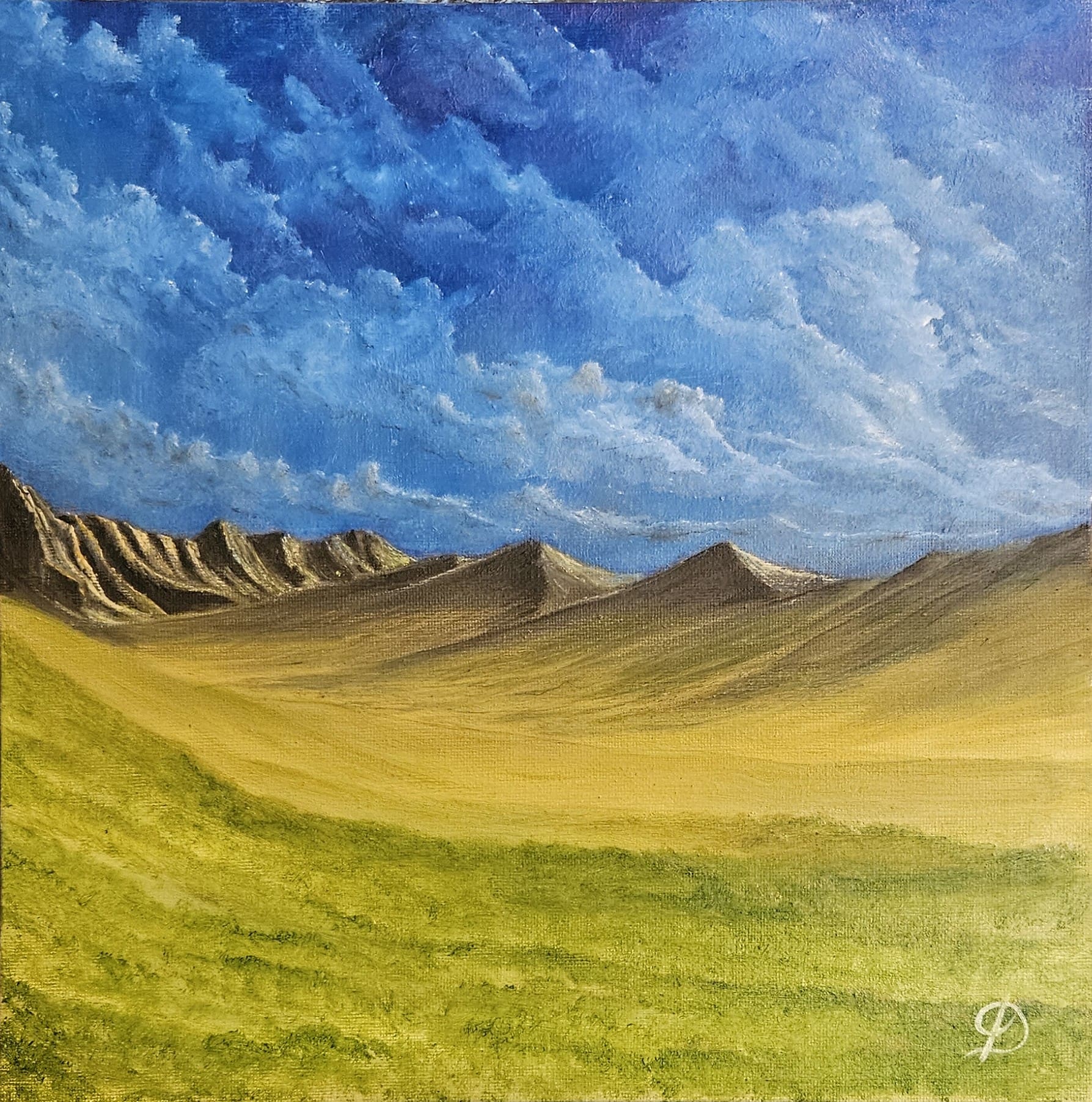 I started painting in 2022 after Covid and when I made the decision to leave my job after 36 years of employment for a large US company. I had never painted before and decided to give it a go to keep myself busy while creating some art. It’s been a journey and I think I am improving. I don’t have the right mindset to paint any real locations so everything I paint just appears on the canvas, textured paper or recently on the wooden panels I upcycle when they become available.